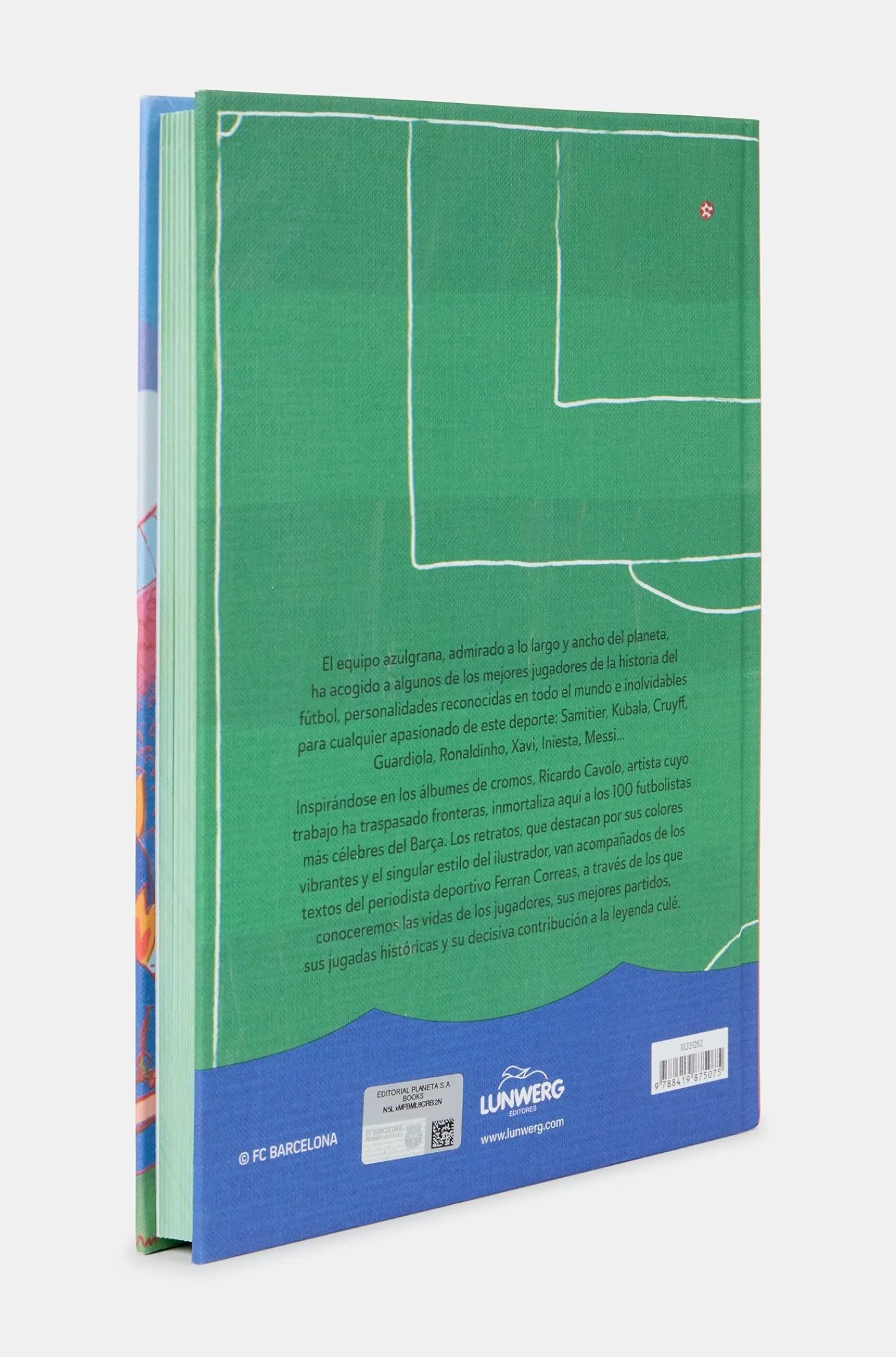 Inspirándose en los álbumes de cromos, Ricardo Cavolo, artista cuyo trabajo ha traspasado fronteras, inmortaliza aquí a los 100 futbolistas más ilustres del Barça. Todos los retratos, que destacan por sus colores vibrantes y el singular estilo del ilustrador, van acompañados de los textos del periodista deportivo Ferran Correas, a través de los que conoceremos las vidas de los jugadores, sus mejores partidos, sus jugadas históricas y su decisiva contribución a la leyenda culé.