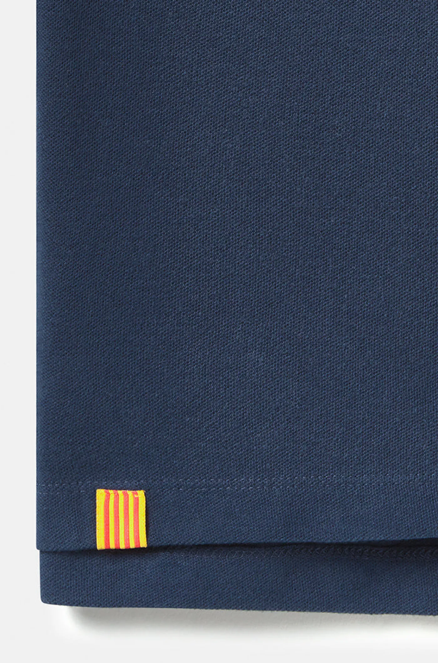Polo de manga corta con escudo en relieve del FC Barcelona y senyera en la cintura. Detalle de mangas con la bandera azu…