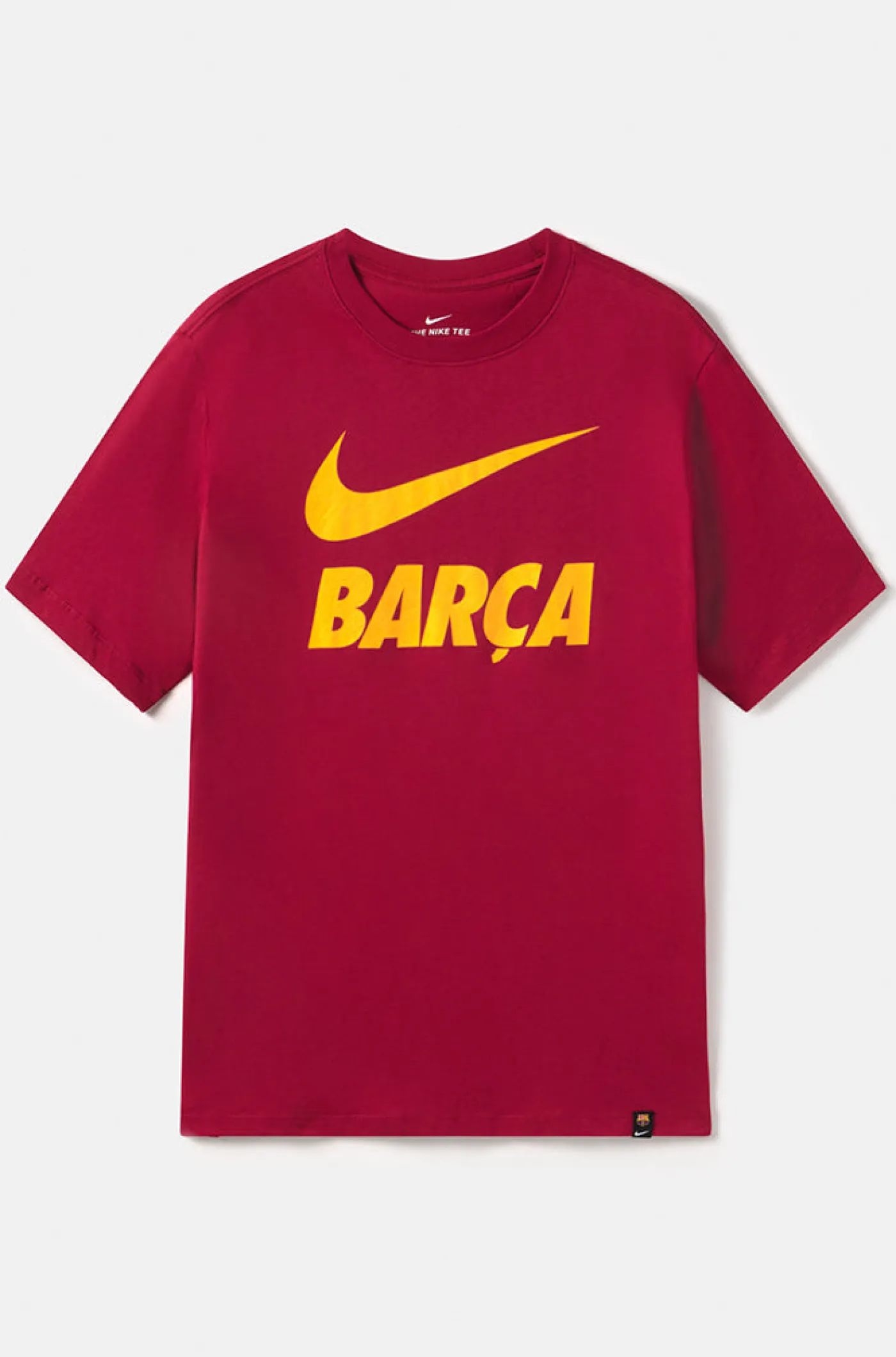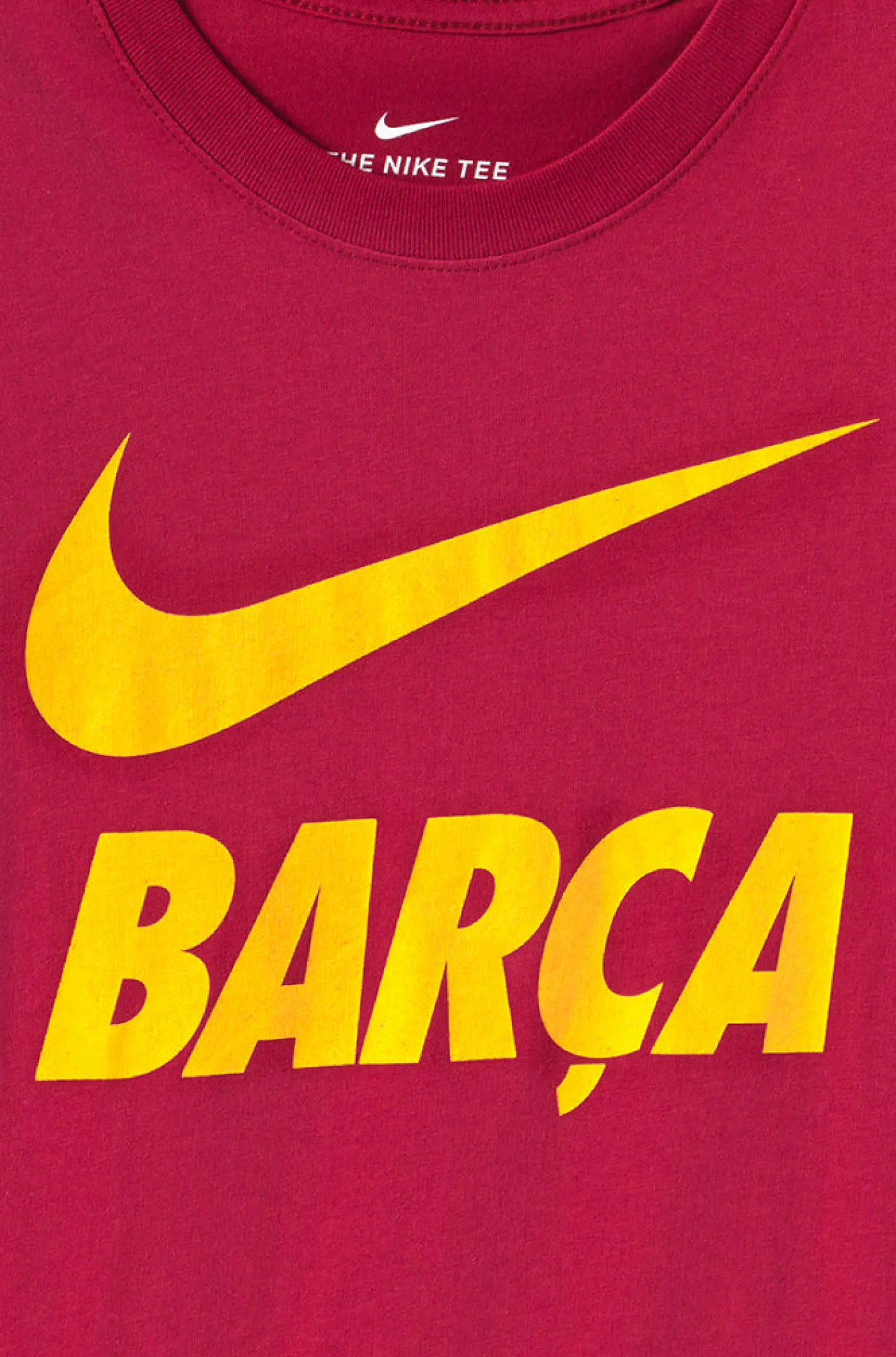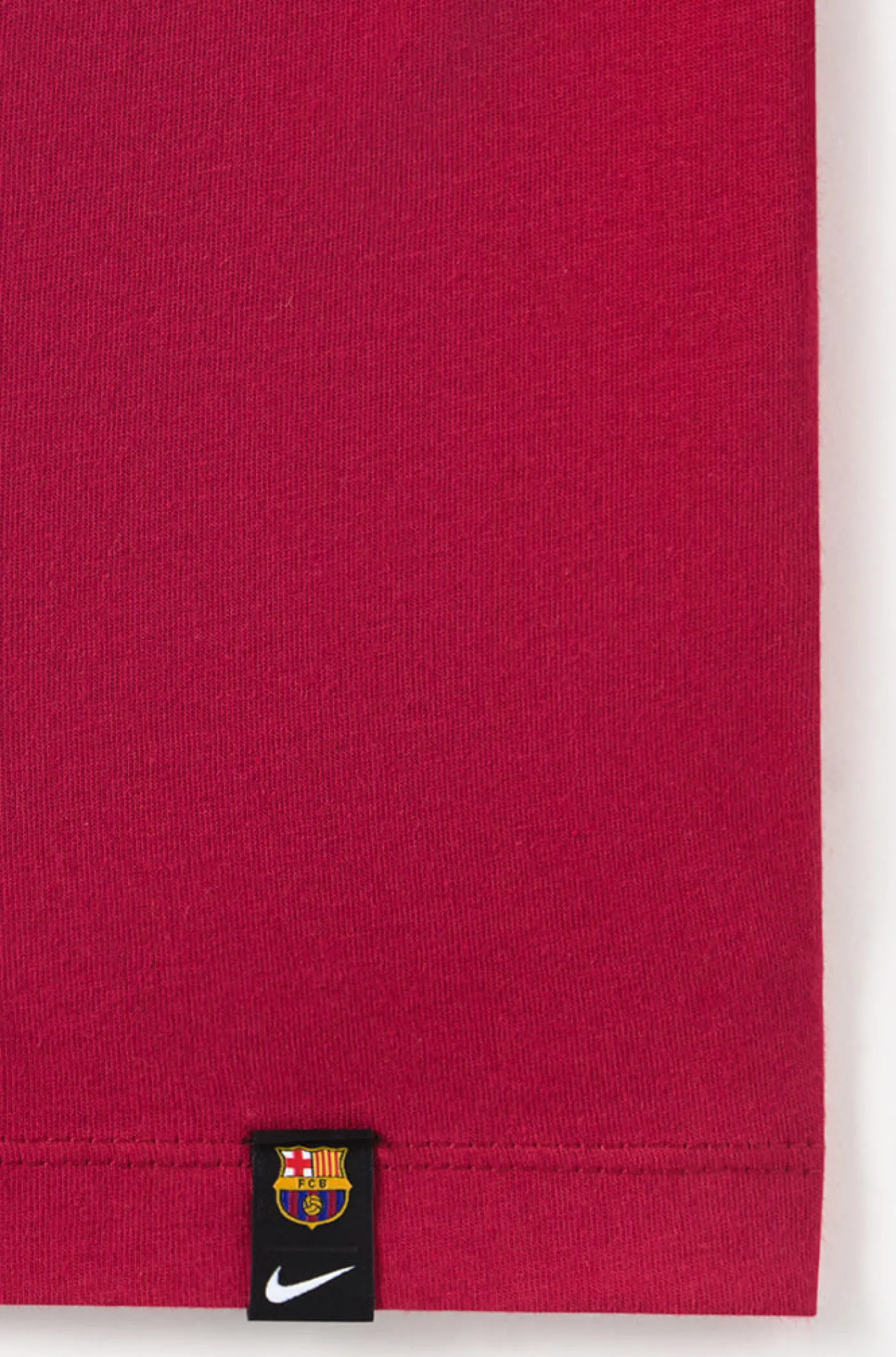 Camiseta de manga corta con el lettering «BARÇA» en el pecho. La camiseta del FC Barcelona presenta un icónico motivo del Barça en un suave tejido de algodón, para que puedas animar a tu equipo mientras disfrutas de una comodidad óptima todos los días. Cuello redondo. Color: Rojo.