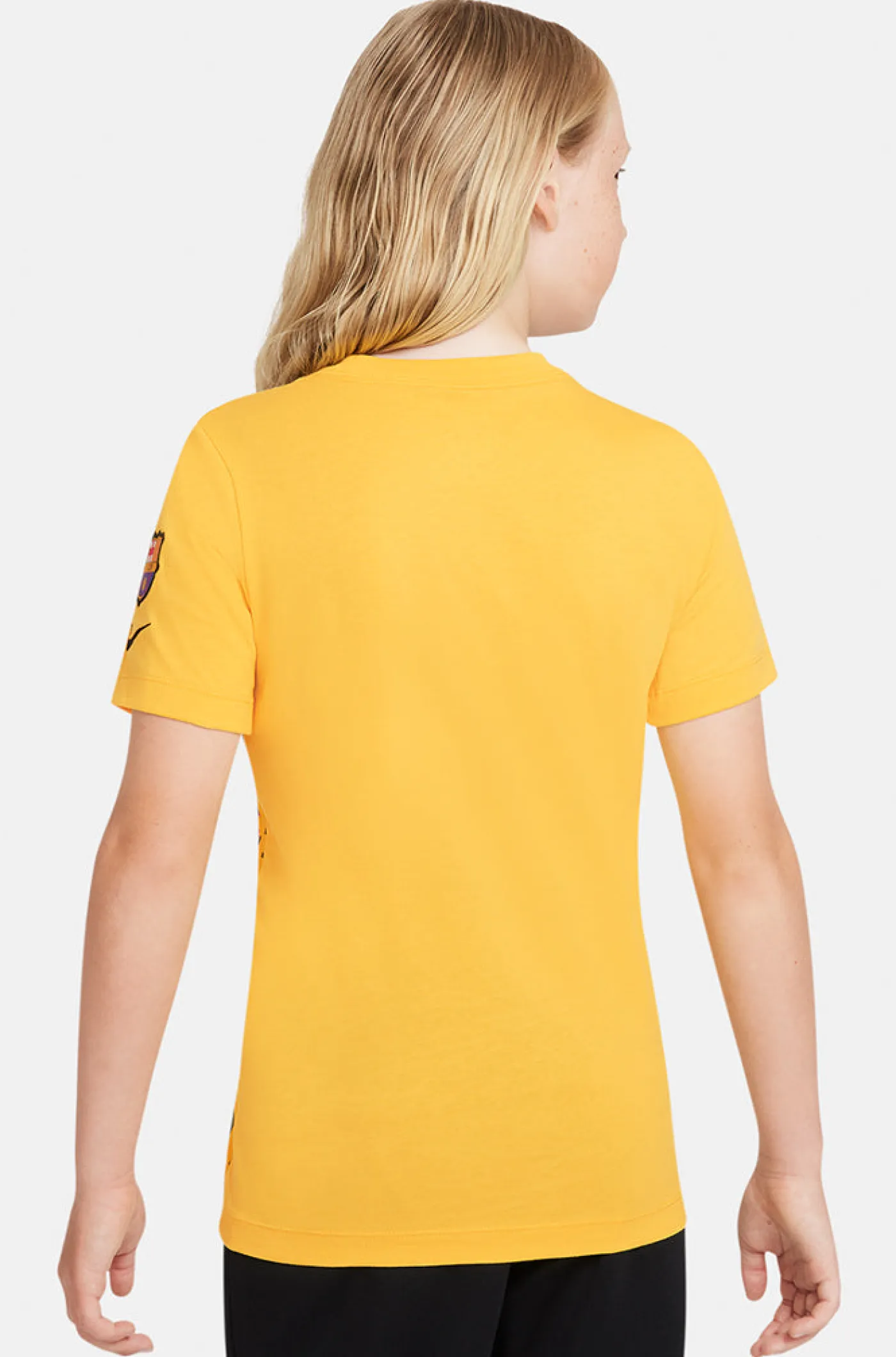 Camiseta del FC Barcelona con el escudo del Club en el pecho. Presenta 5 estampados separados diseñados por 5 distritos de Barcelona para crear un look fresco. Cuello redondo. Su tejido de algodón la convierte en una prenda cómoda y ligera. Color: amarillo.