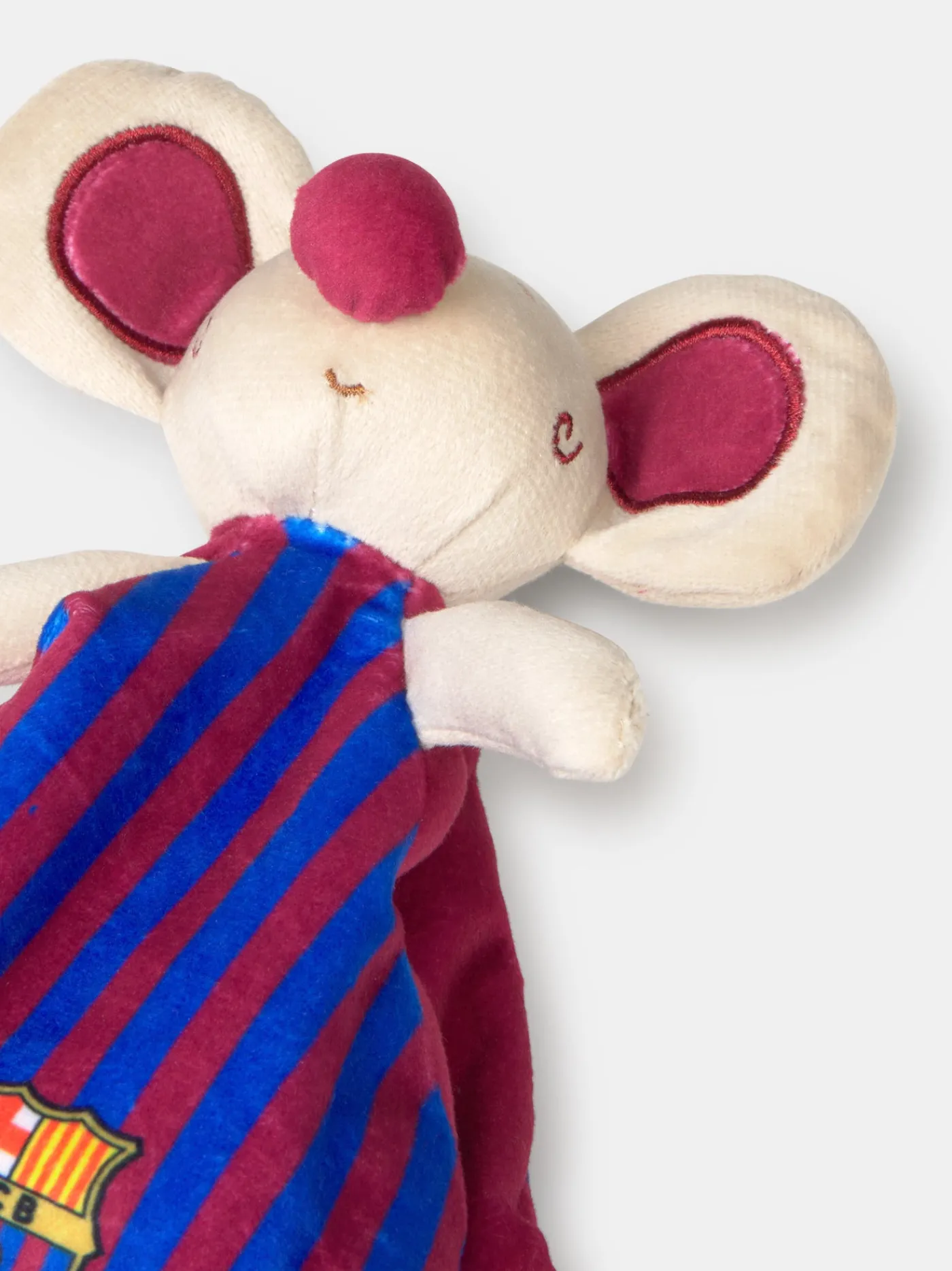 Este encantador dou-dou con diseño de ratoncito, en los icónicos colores rojo y azul y el logotipo oficial del club, es perfecto para los más pequeños de la casa. Fabricado con materiales suaves y de alta calidad, proporciona confort y seguridad, siendo ideal para acompañar a los bebés en sus momentos de descanso.