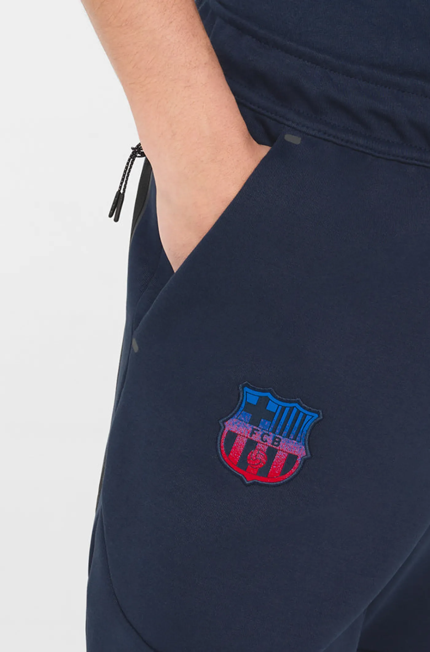 Pantalón deportivo con el escudo del FC Barcelon y logo de Nike bordados a contraste. Cintura elástica con cordones. Bolsillos delanteros: 2. Bajo con acabado en canalé. Color: azul marino.