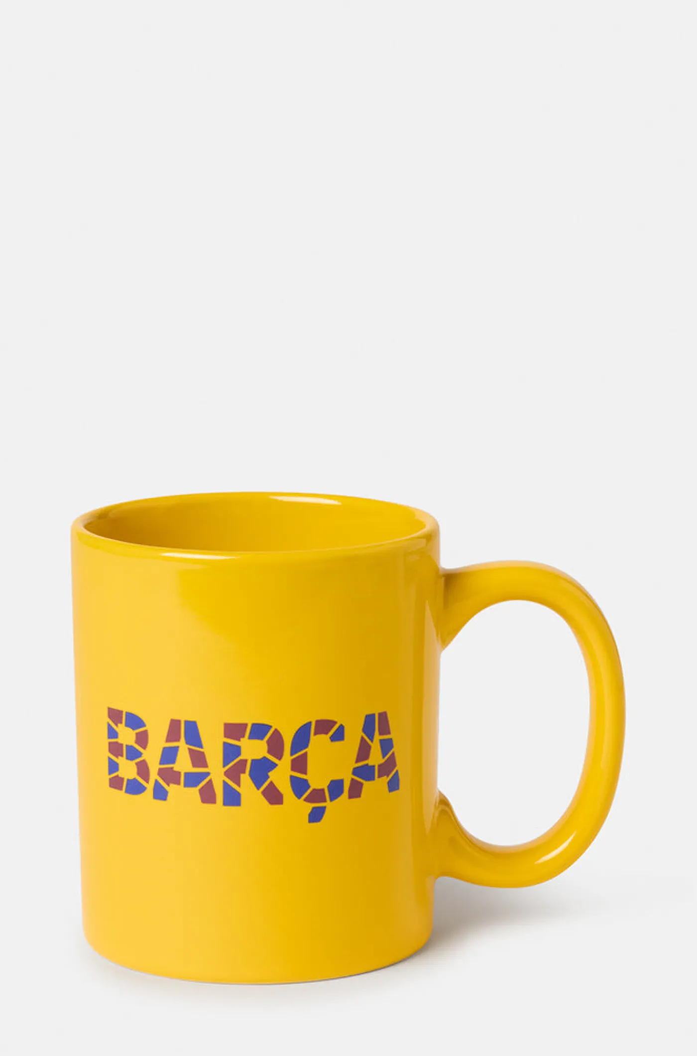 Taza de cerámica con mosaico en colores blaugranas y escudo del FC Barcelona. Asa que facilita el agarre. Color: amarillo