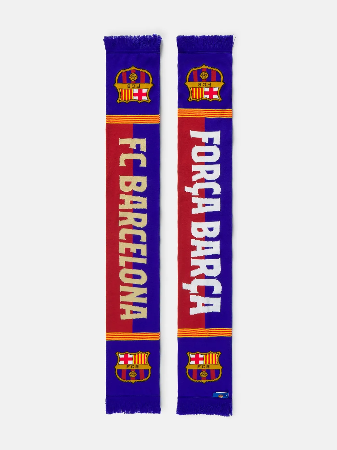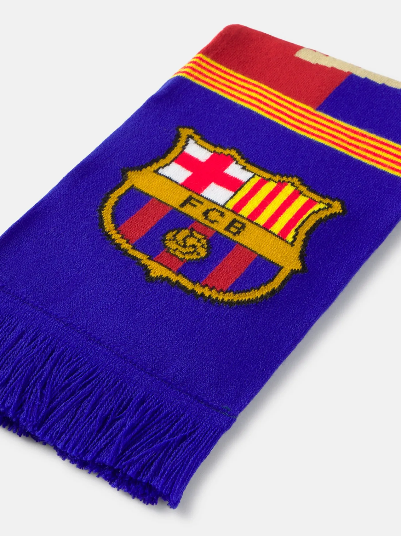 Bufanda reversible del FC Barcelona, perfecta para mostrar el orgullo por tu equipo tanto en los partidos como en casa como fuera. Extremos con flecos decorativos.