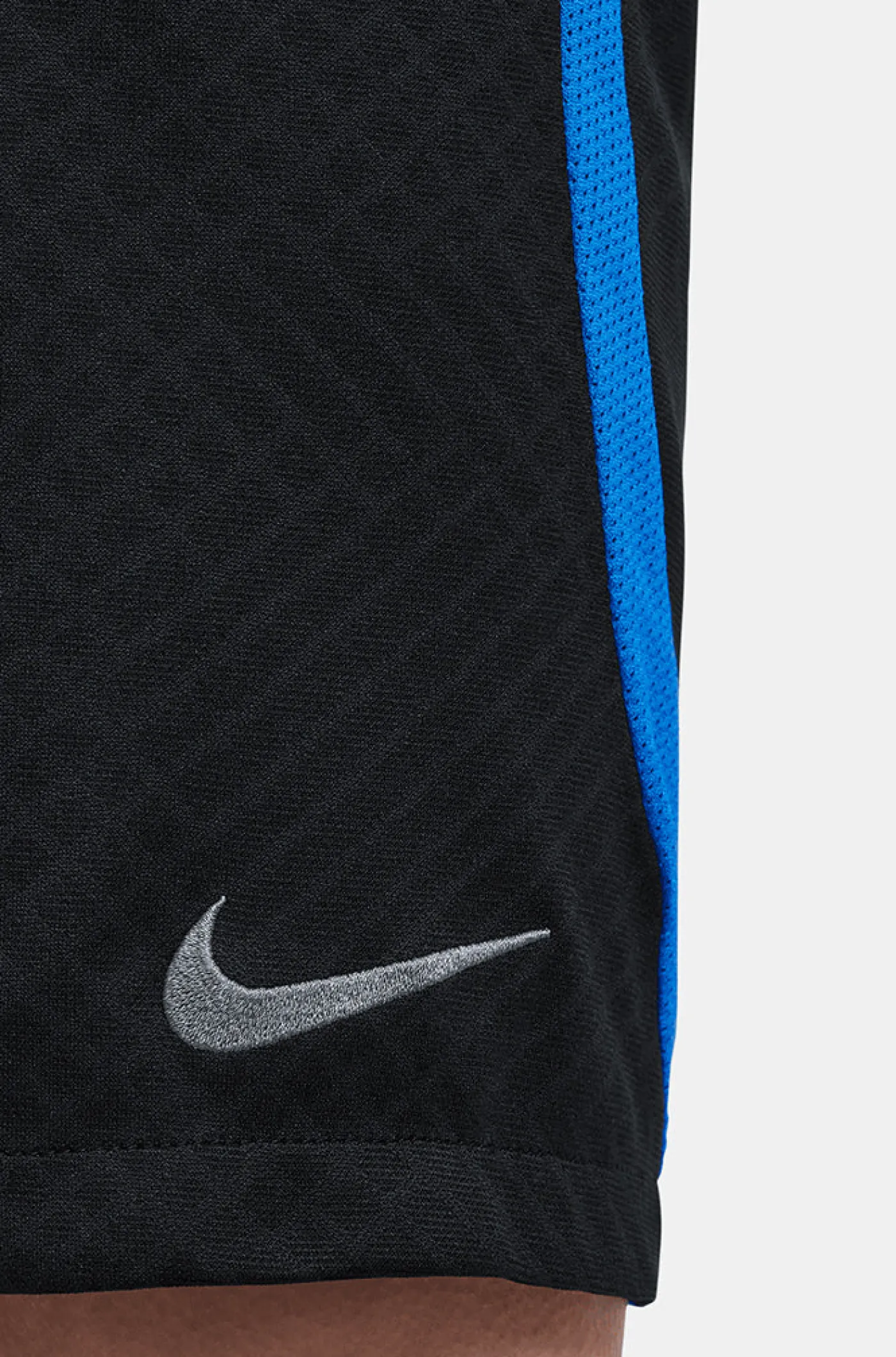 Pantalón corto de entrenamiento para niños/as de 6 a 14 años con parche del escudo del FC Barcelona y el logo de Nike en la parte inferior. Ambas piernas están decoradas con una franja en diagonal. Cintura elástica con cordón. Dos bolsillos laterales con cremallera. El tejido Nike Breathe mantiene la transpirabilidad y la frescura. Tecnología Dri-FIT de Nike. Color: negro y azul.