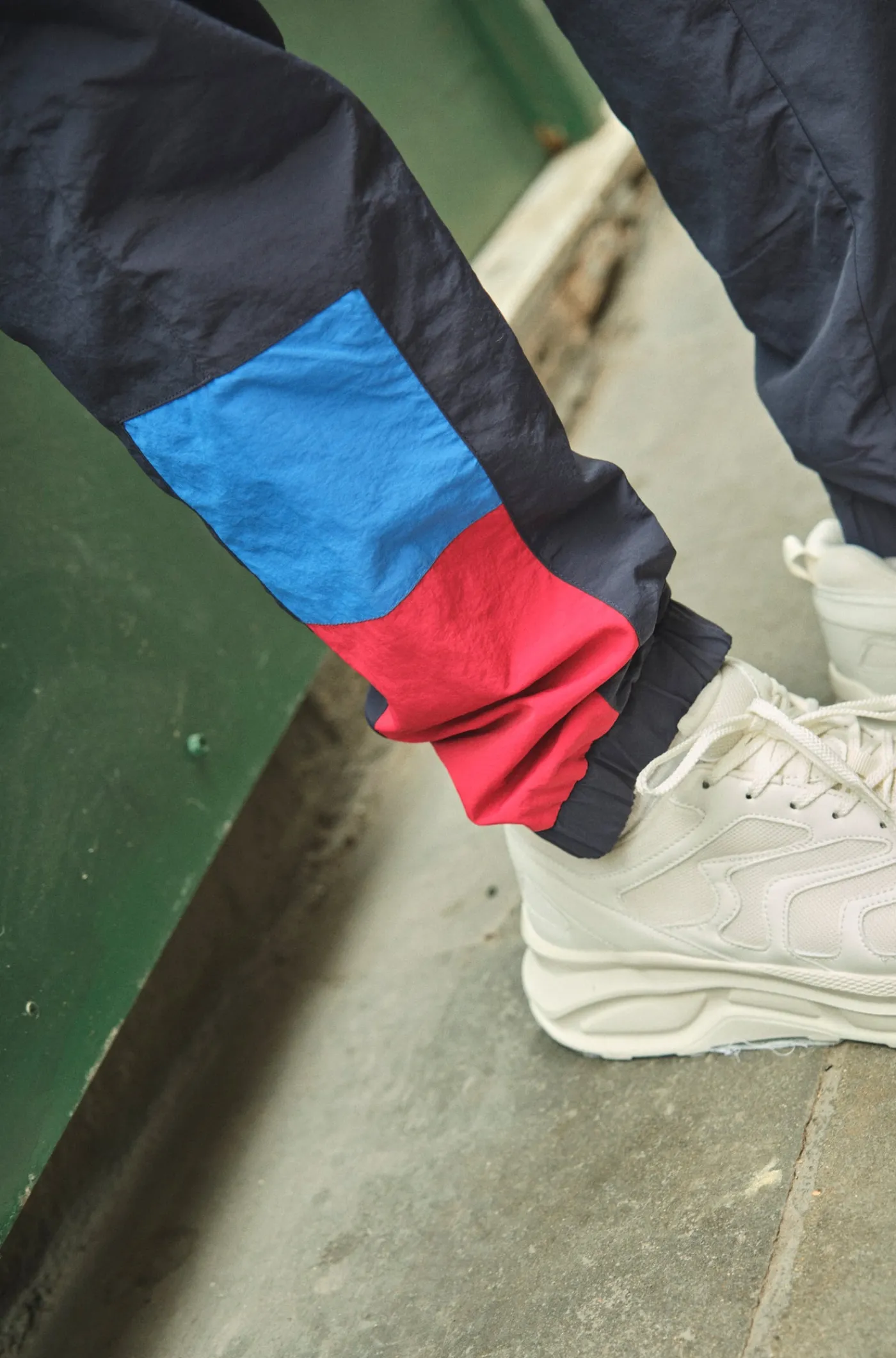 Pantalón vintage del FC Barcelona con escudo del FC Barcelona bordado. Cintura elástica. Bolsillos delanteros: 2 con cierre con cremallera. Bajos elásticos. Color: Azul marino, azul eléctrico y granate.