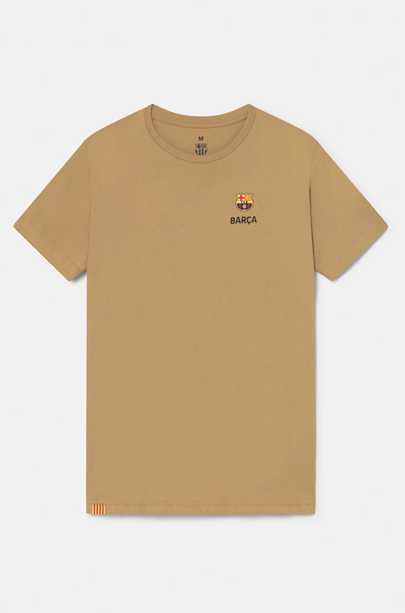 Camiseta de manga corta con rotulación de “Barça” y el logo de Nike centrados en el pecho. Detalle de escudo del F…
