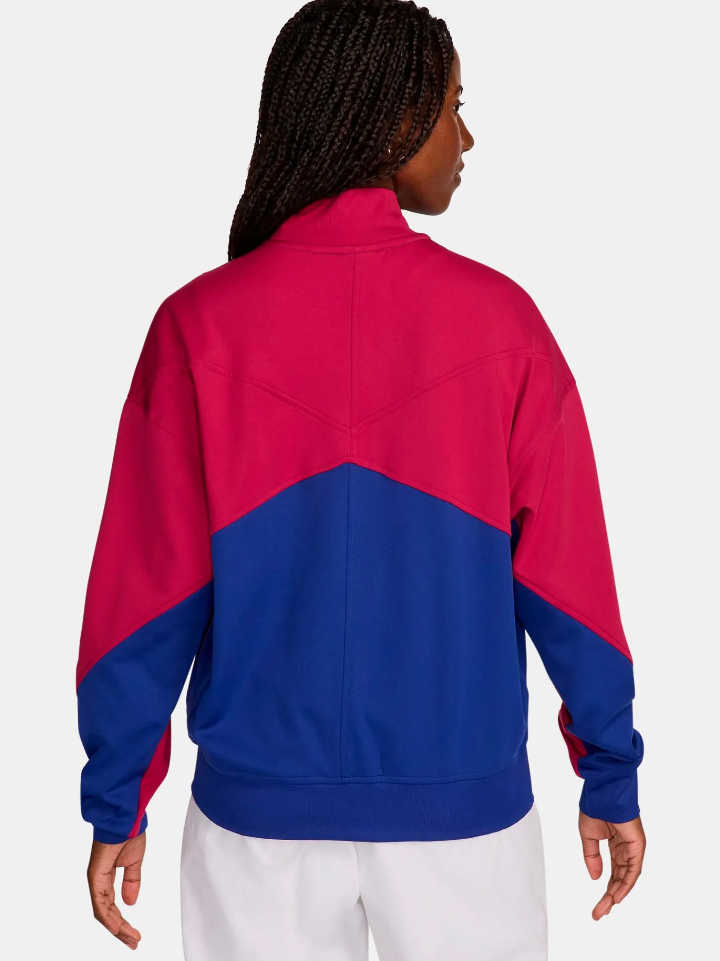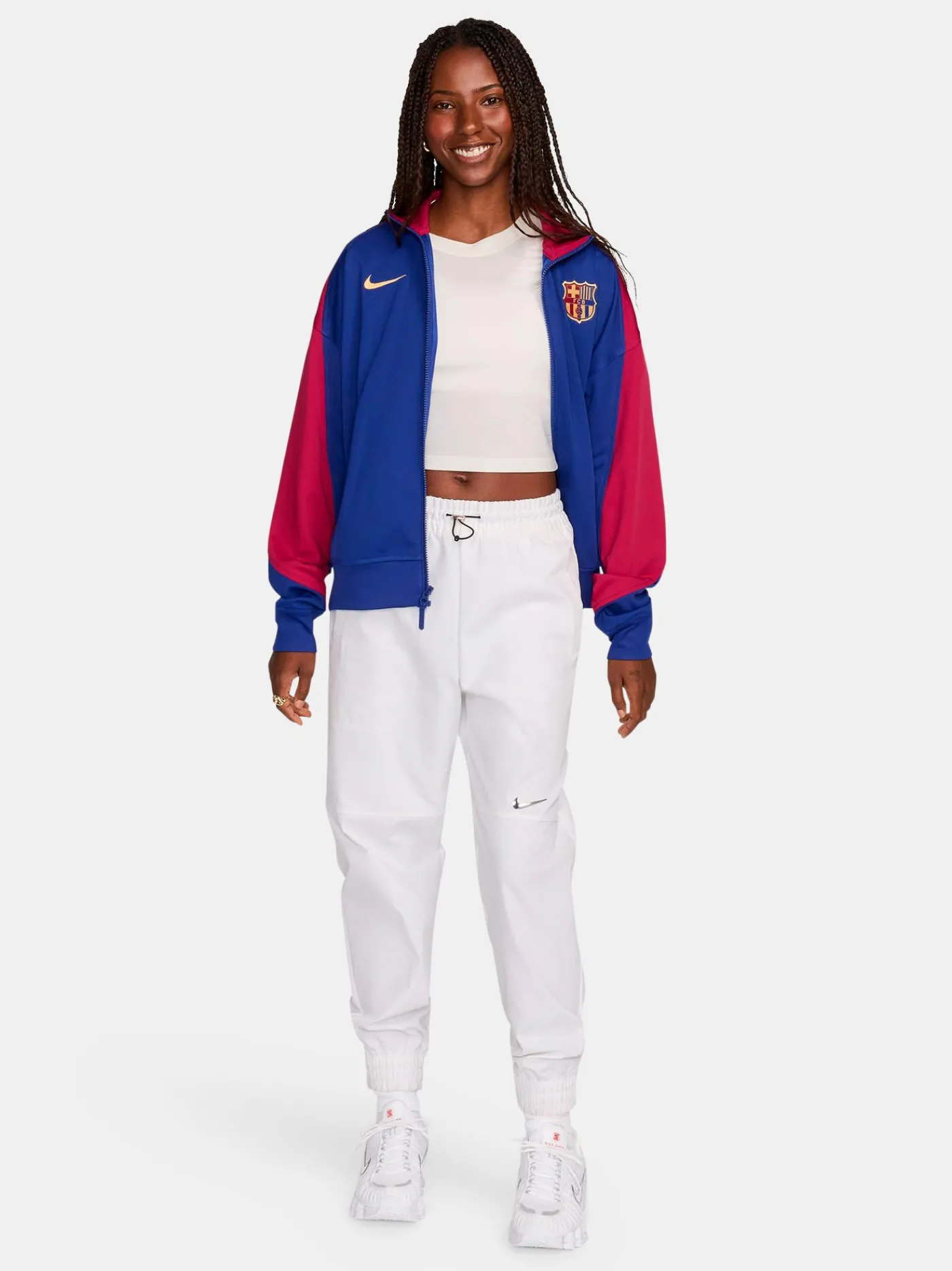 Chaqueta prepartido del FC Barcelona 24/25 para mujer. Diseñada con el parche del escudo del FC Barcelona y el logo de …