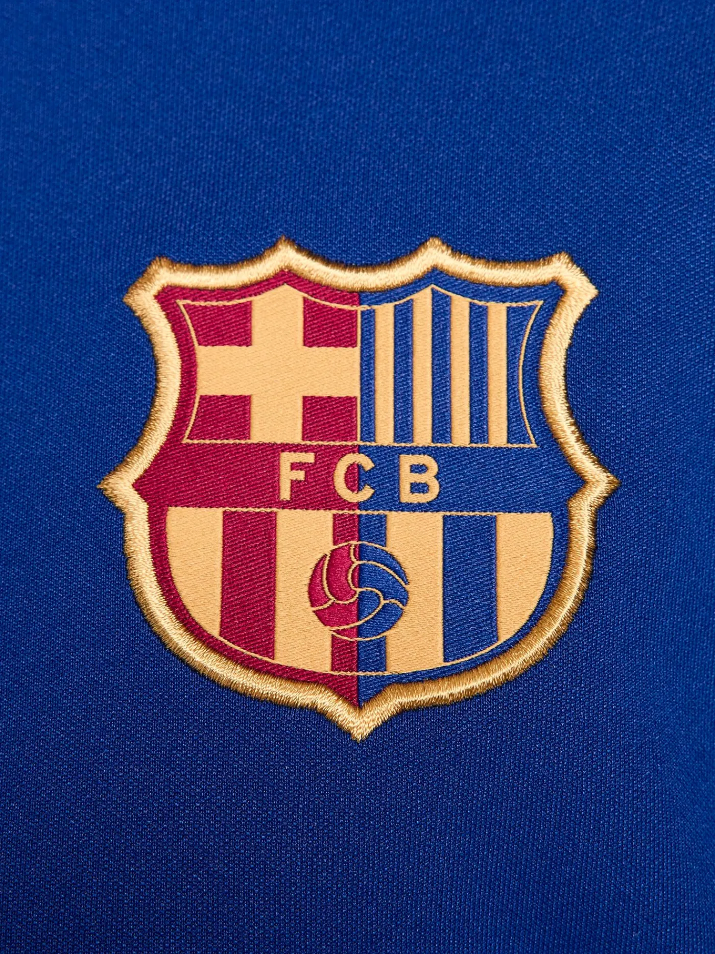 Chaqueta prepartido del FC Barcelona 24/25 para mujer. Diseñada con el parche del escudo del FC Barcelona y el logo de Nike bordado. Cuello mao. Manga larga. Cierre con cremallera. Cintura y puños elásticos. Bolsillos delanteros: 2 con cremallera.