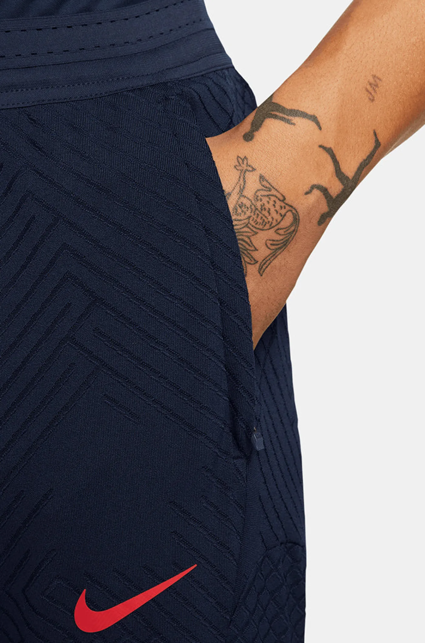 Pantalón edición jugador de entrenamiento con el parche del FC Barcelona y logo de Nike. Detalle de franja diagonal a contraste en ambas piernas. Cintura elástica con cordones. Bajos con cremalleras laterales para mayor comodidad. Paneles de ventilación. Su tecnología Nike Dri-FIT ADV cuenta con un tejido de gran elasticidad y secado rápido que evita el roce y combate la humedad. Color: azul marino.