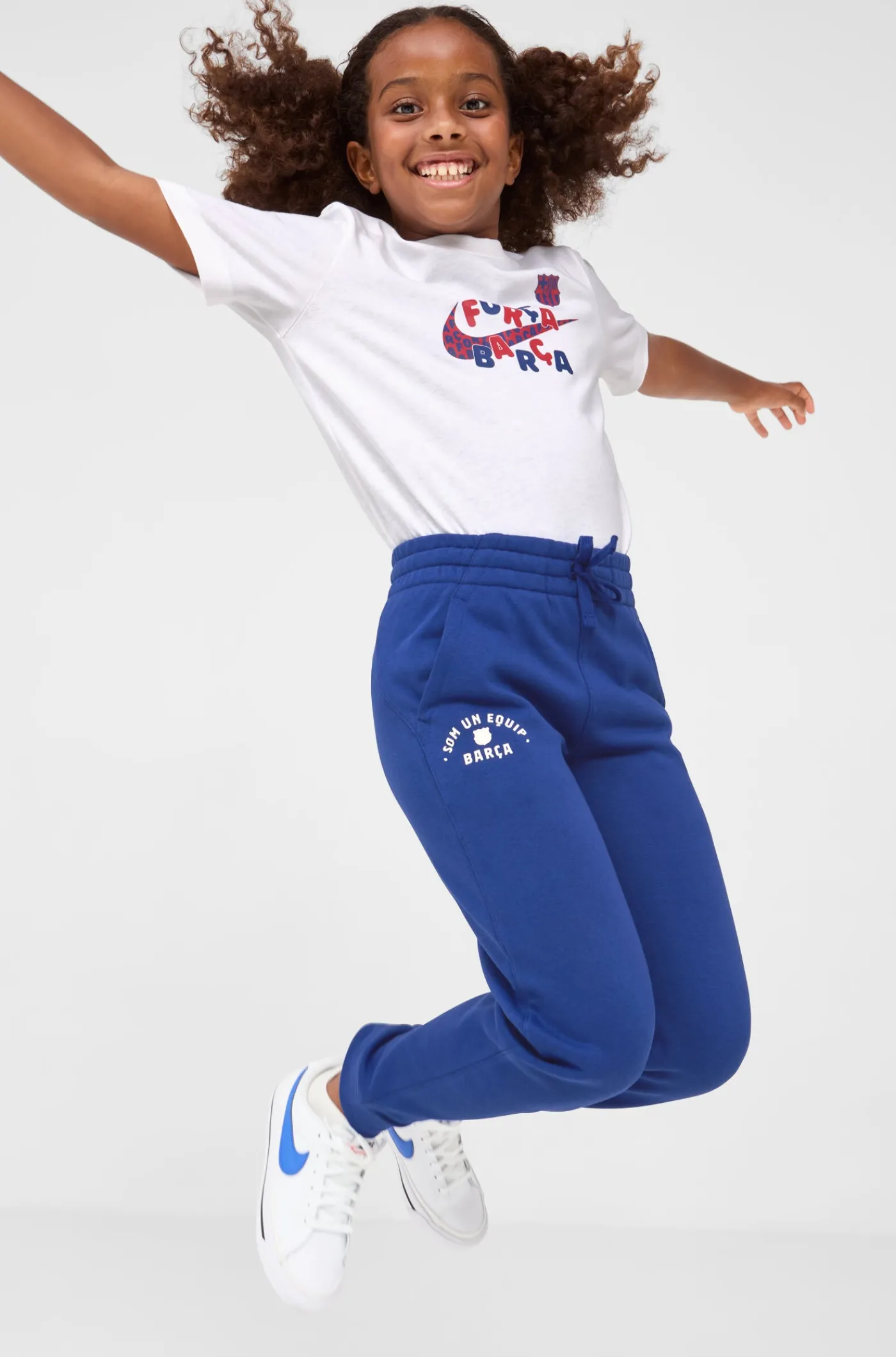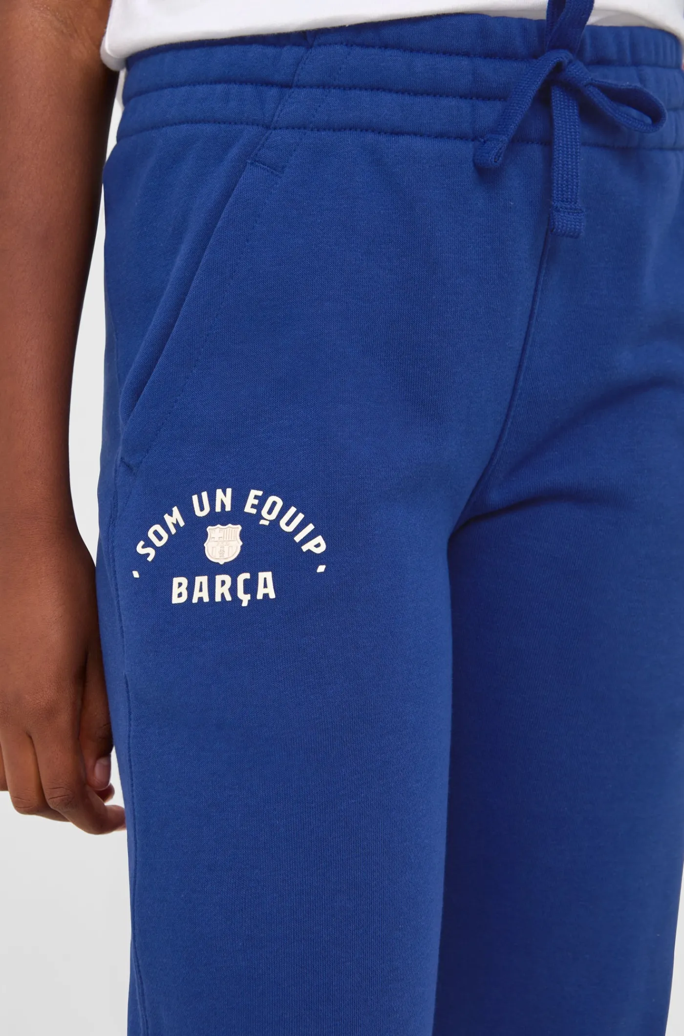 Pantalón deportivo para niños/as de 6 a 14 años. Con la silueta del escudo del FC Barcelona y con el lettering «Som u…