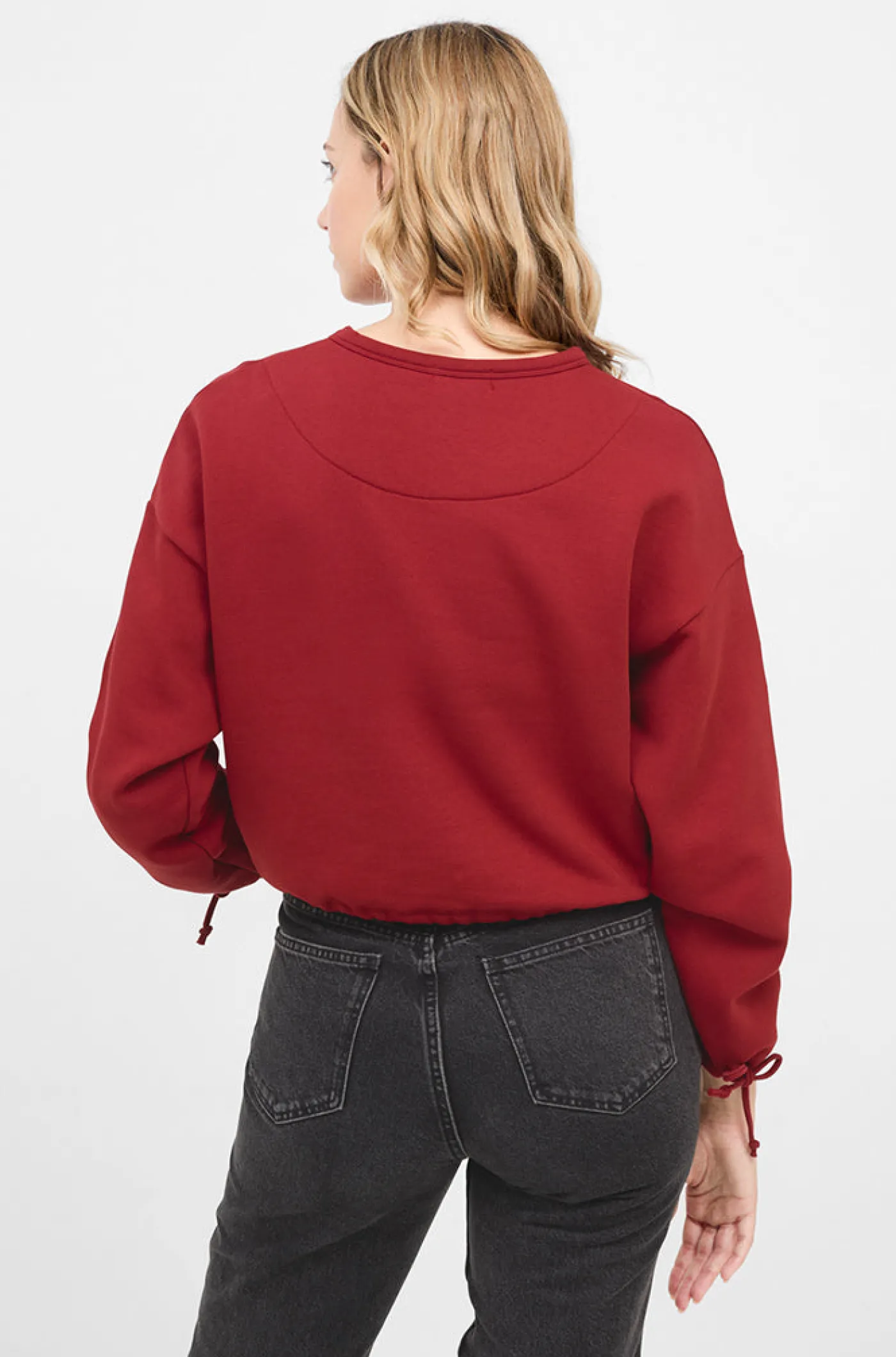 Sudadera de corte crop diseñada con estampado paisley y escudo del FC Barcelona. Cuello redondo. Manga larga. Interior de felpa ligera. Cintura y puños ajustables mediante tiras para anudar. Ideal para presumir de look y equipo. Prenda sostenible está hecha a partir de tejidos orgánicos y/o reciclados. Color: Granate. Venta exclusiva de Barça Stores