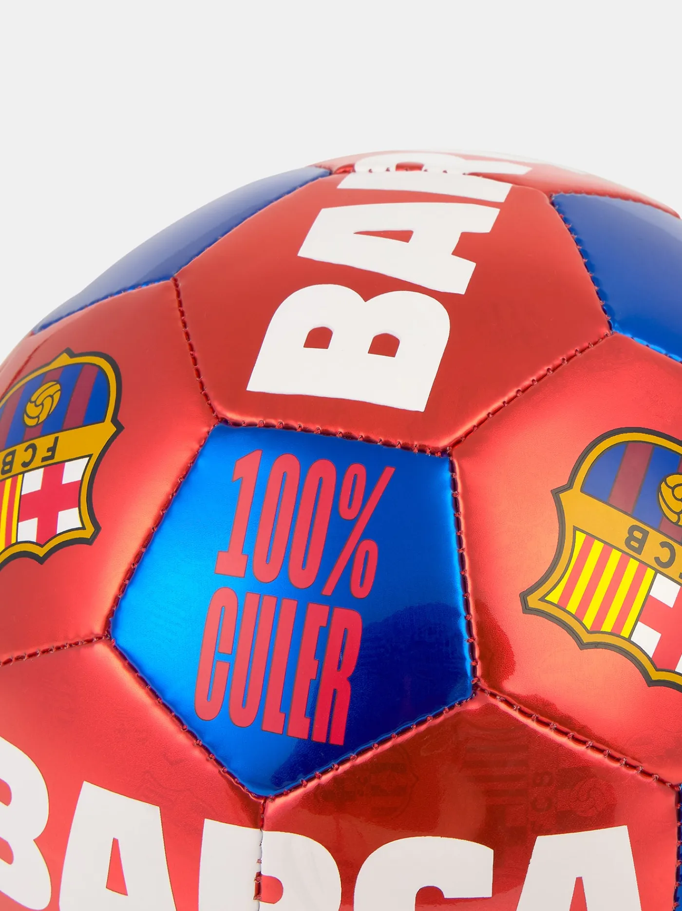 Balón con diseño blaugrana.Letras en el centro con la palabra «Barça» y escudo a ambos lados. Inscripción «100% cule…