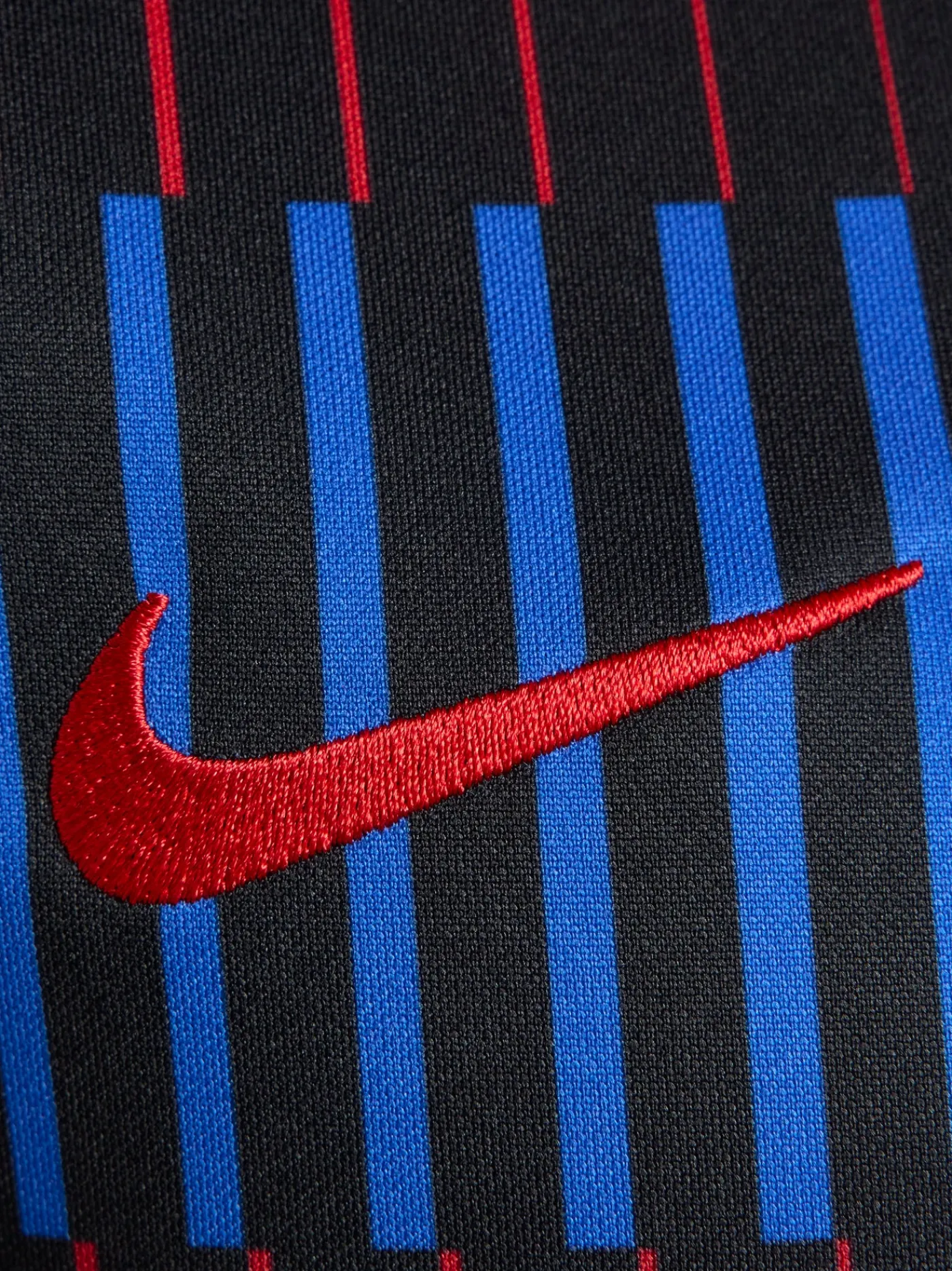 Camiseta pre-partido del FC Barcelona de la temporada 24/25 para mujer. Lo usan los jugadores del primer equipo para calentar antes de salir al campo durante los partidos. Camiseta con parche del escudo del FC Barcelona y logo de Nike bordado. Escote redondeado. Mangas cortas. Tecnología Nike Dri-FIT. Color: negro