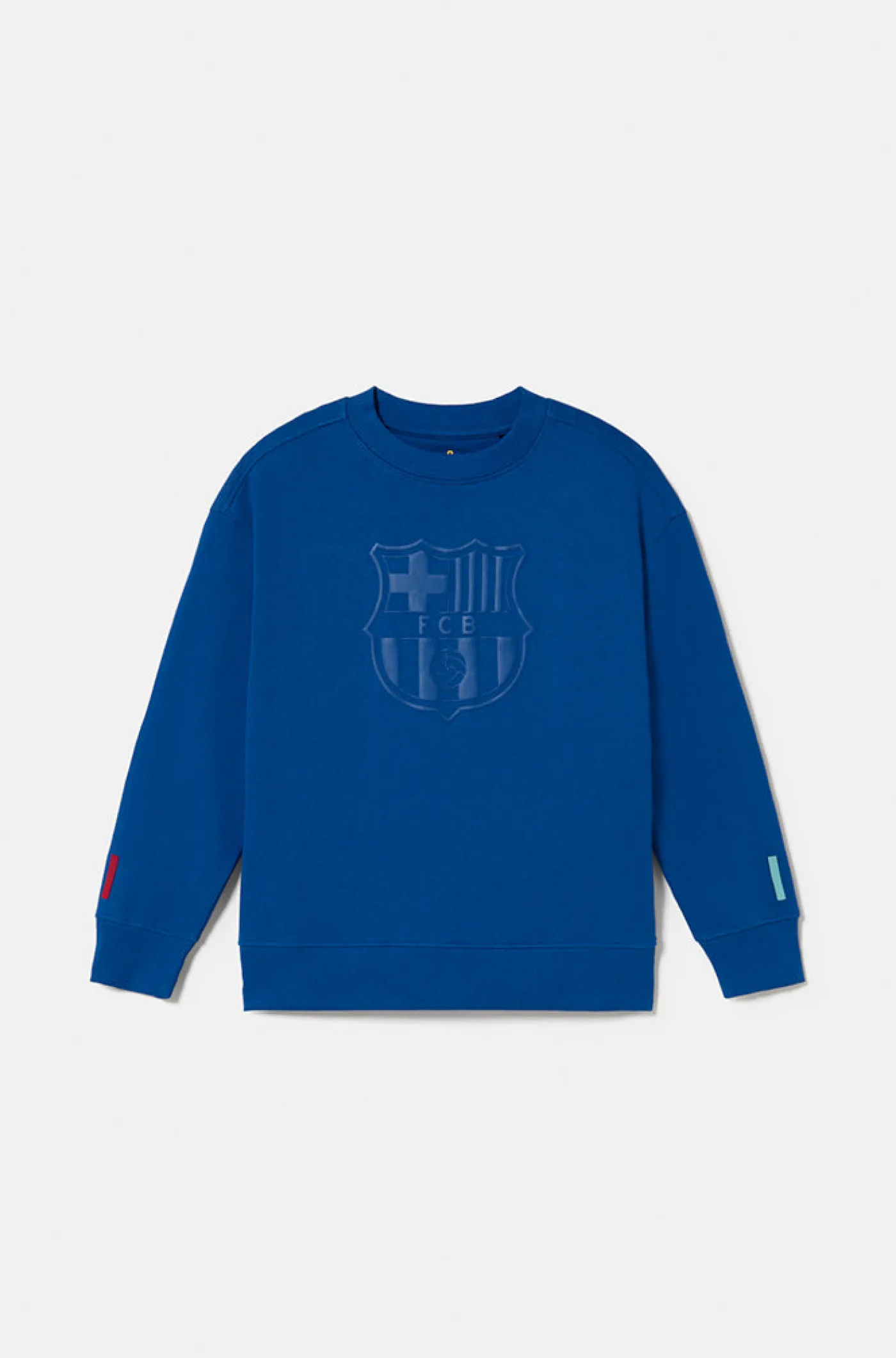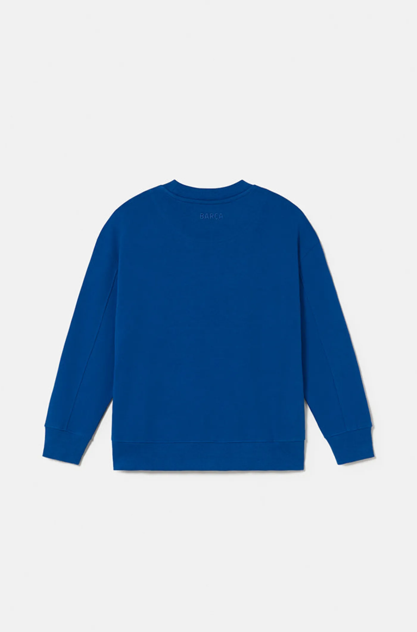Sudadera para bebés de manga larga y cuello redondo con el escudo del FC Barcelona en estampado ligeramente en relieve en la parte delantera y texto «Barça» en la espalda. Con puños y cintura elásticos. Color: azul