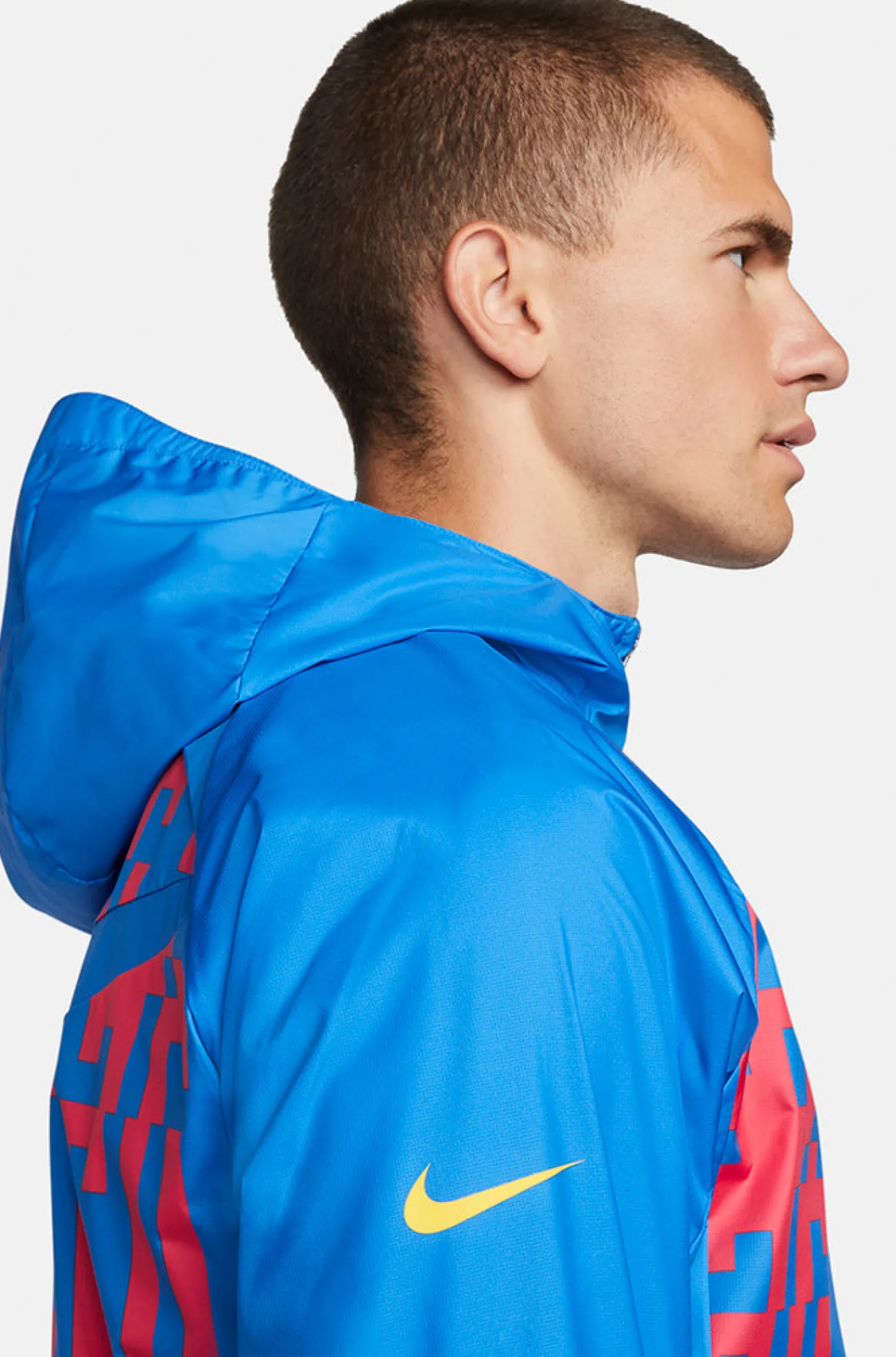 Chaqueta con el escudo del FC Barcelona y el logo de Nike bordados. Manga larga. Interior de felpa ligera. Cierre con cremallera. Cintura y puños elásticos. Bolsillo delantero. Color: blaugrana.