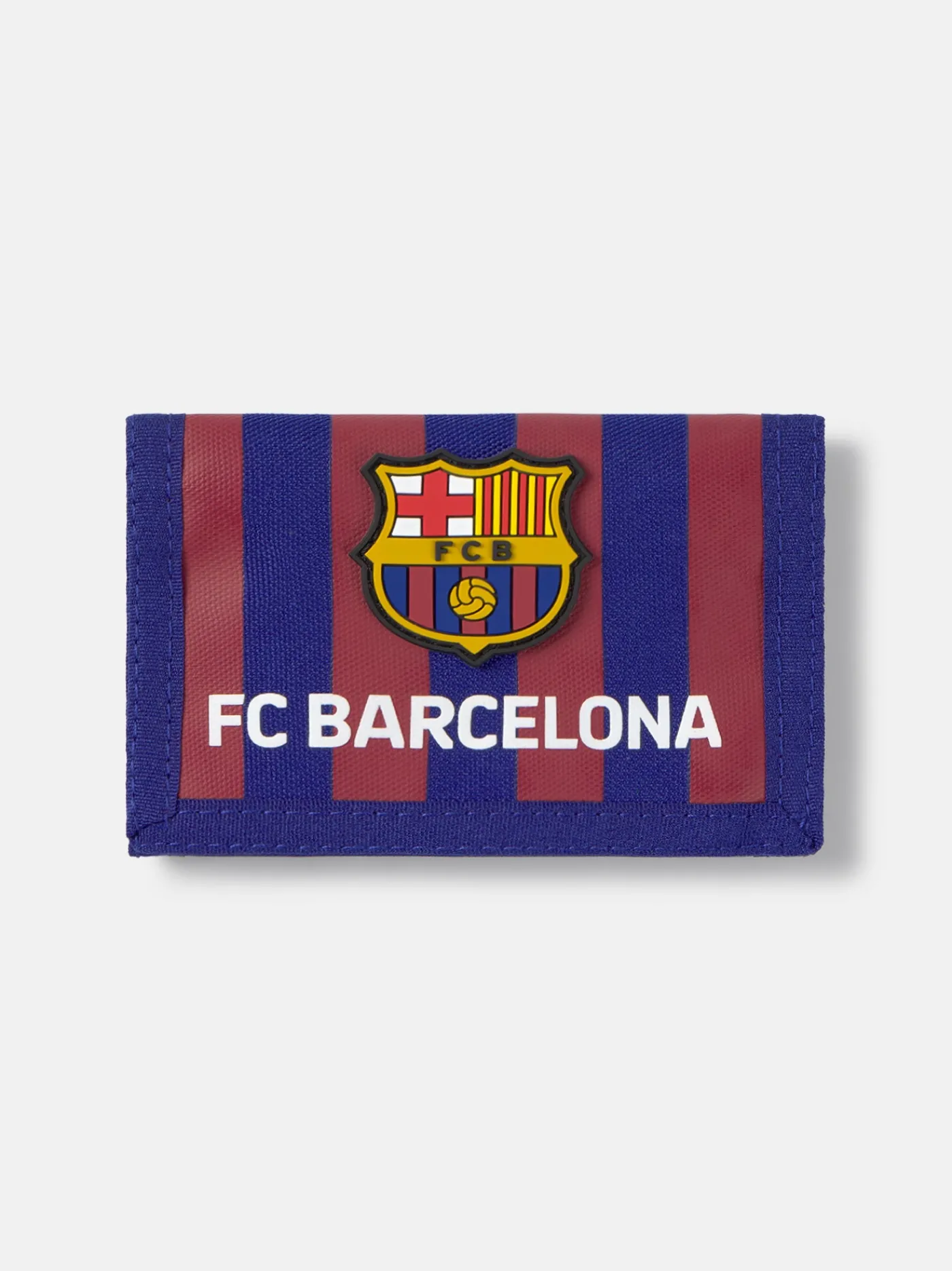 Cartera primera equipación del FC Barcelona 24/25 con el escudo y logo. Cierre de solapa y velcro. Interior: 3 comparti…