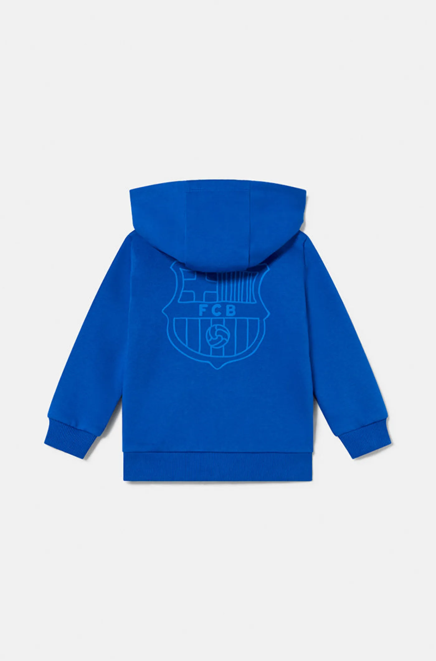 Sudadera con capucha para bebé con el escudo animado del FC Barcelona y el texto ‘Barça’. Espalda con el escudo del FC Barcelona en relieve. Interior de forro polar ligero. Manga larga. Cintura y puños elásticos. Cierre de cremallera. Bolsillo canguro. Color: Azul.