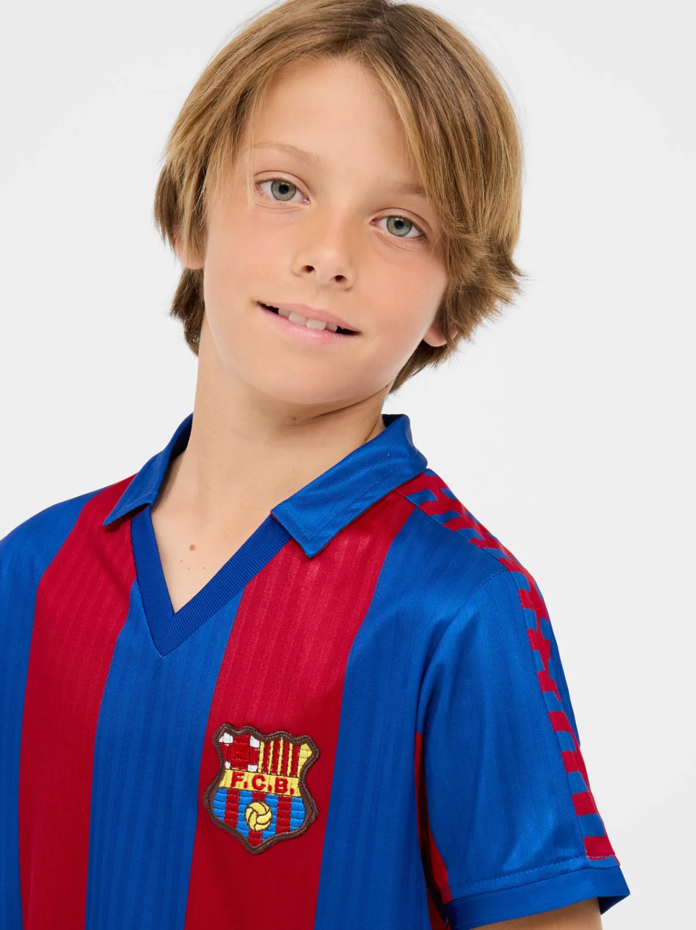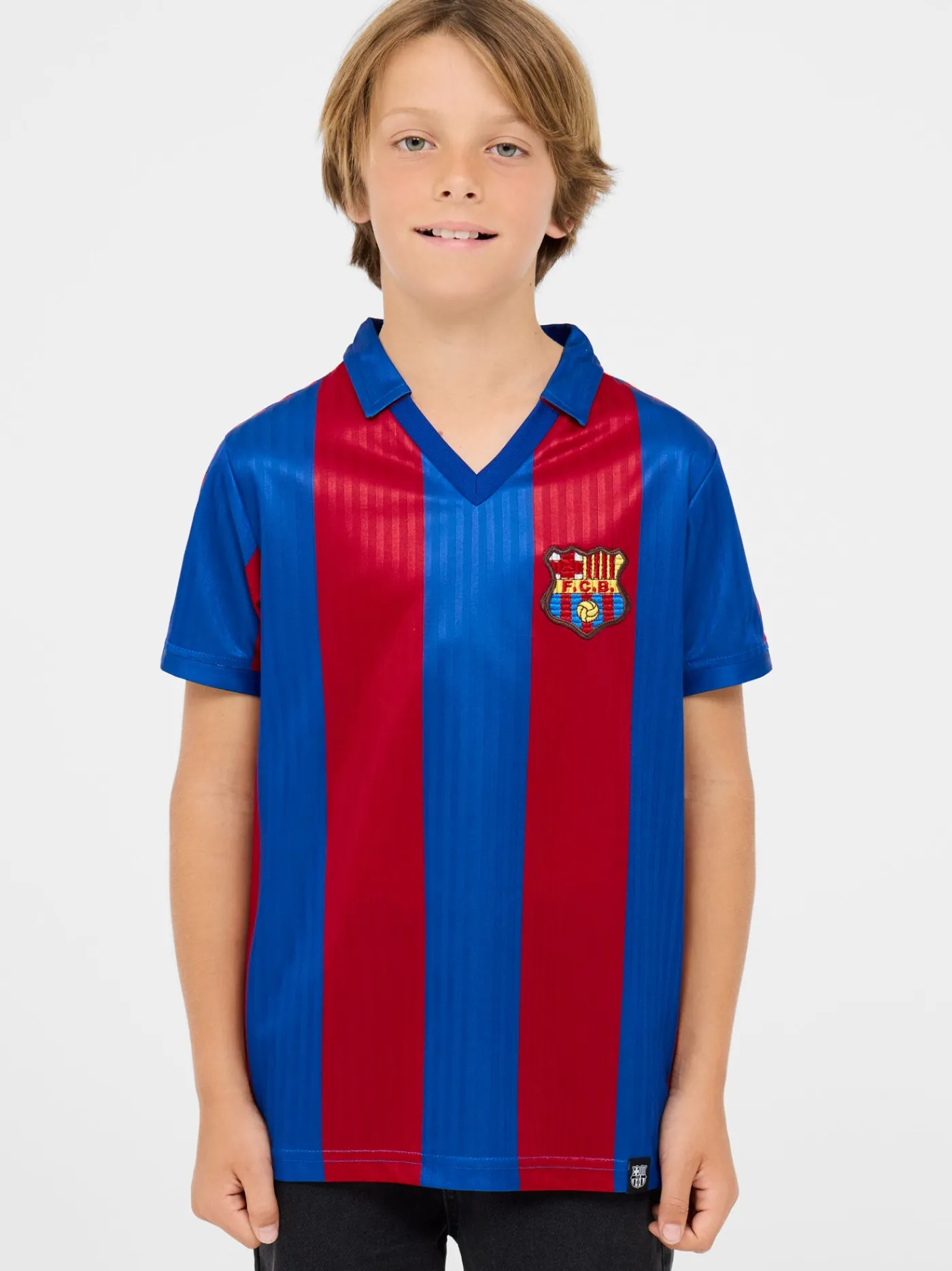 Réplica de la camiseta junior de la 1ª equipación del FC Barcelona en las temporadas 1990-92. Cuello con solapa. Mang…