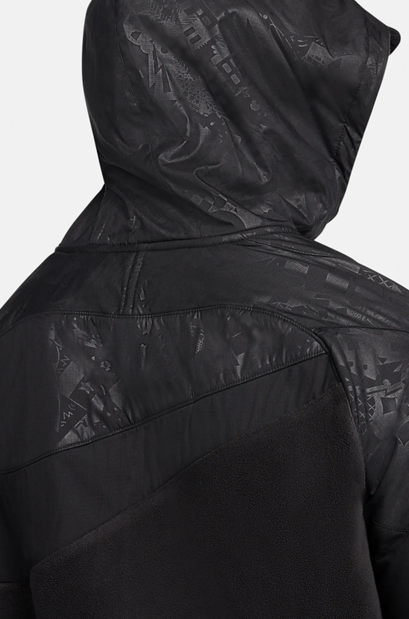 Chaqueta cortavientos con parche del escudo del FC Barcelona y logo de Nike en el pecho. Forro polar suave con paneles repelentes al agua en la parte superior del torso y en la parte inferior de las mangas. Cuello alto con capucha fija. Cierre con cremallera. Manga larga con puño elástico. Dos bolsillos laterales con cremalleras. Color: negro.