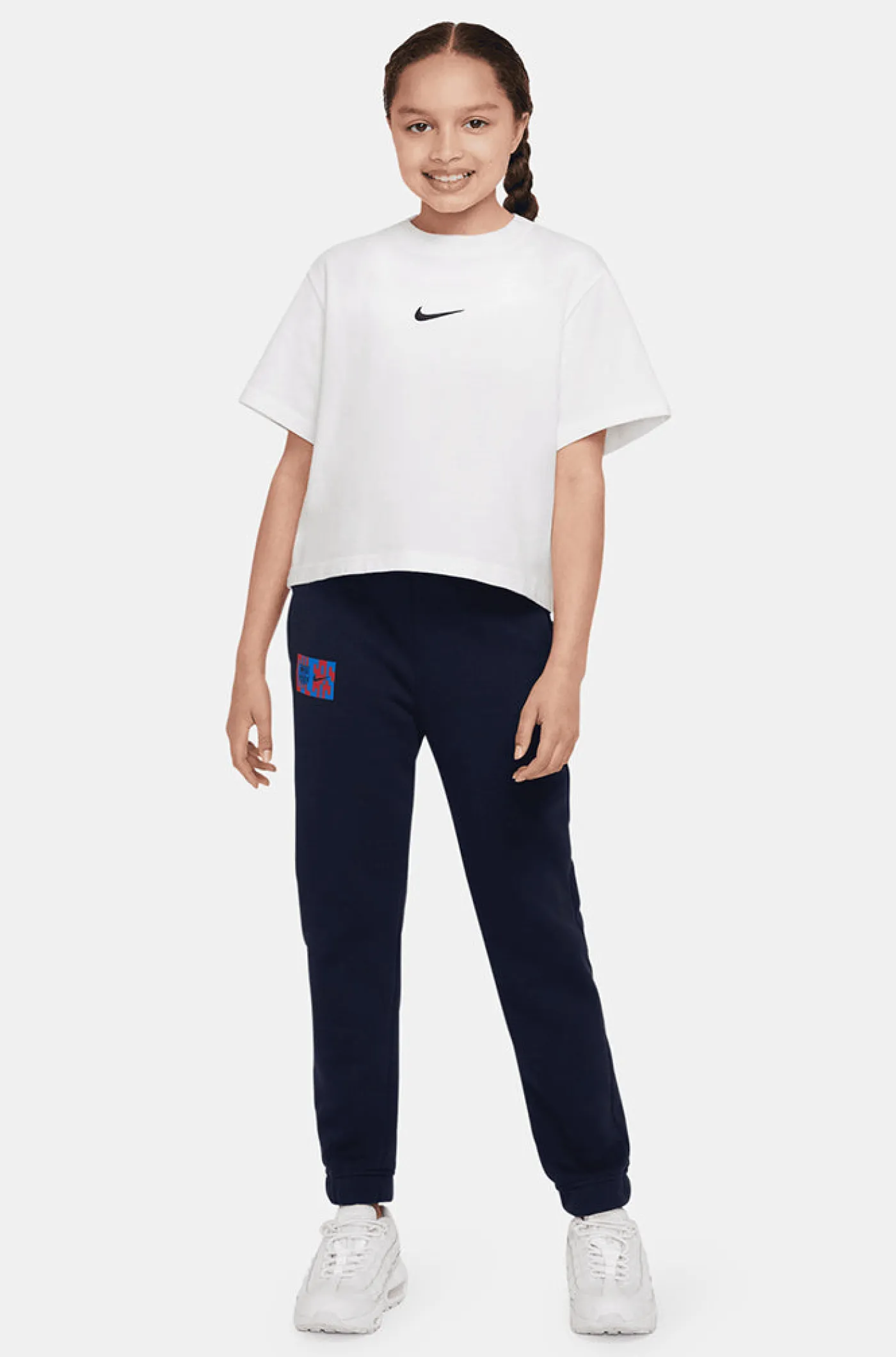 Pantalón deportivo para niños/as de 6 a 14 años con el parche del escudo de FC Barcelona y el logo de Nike bordado a …