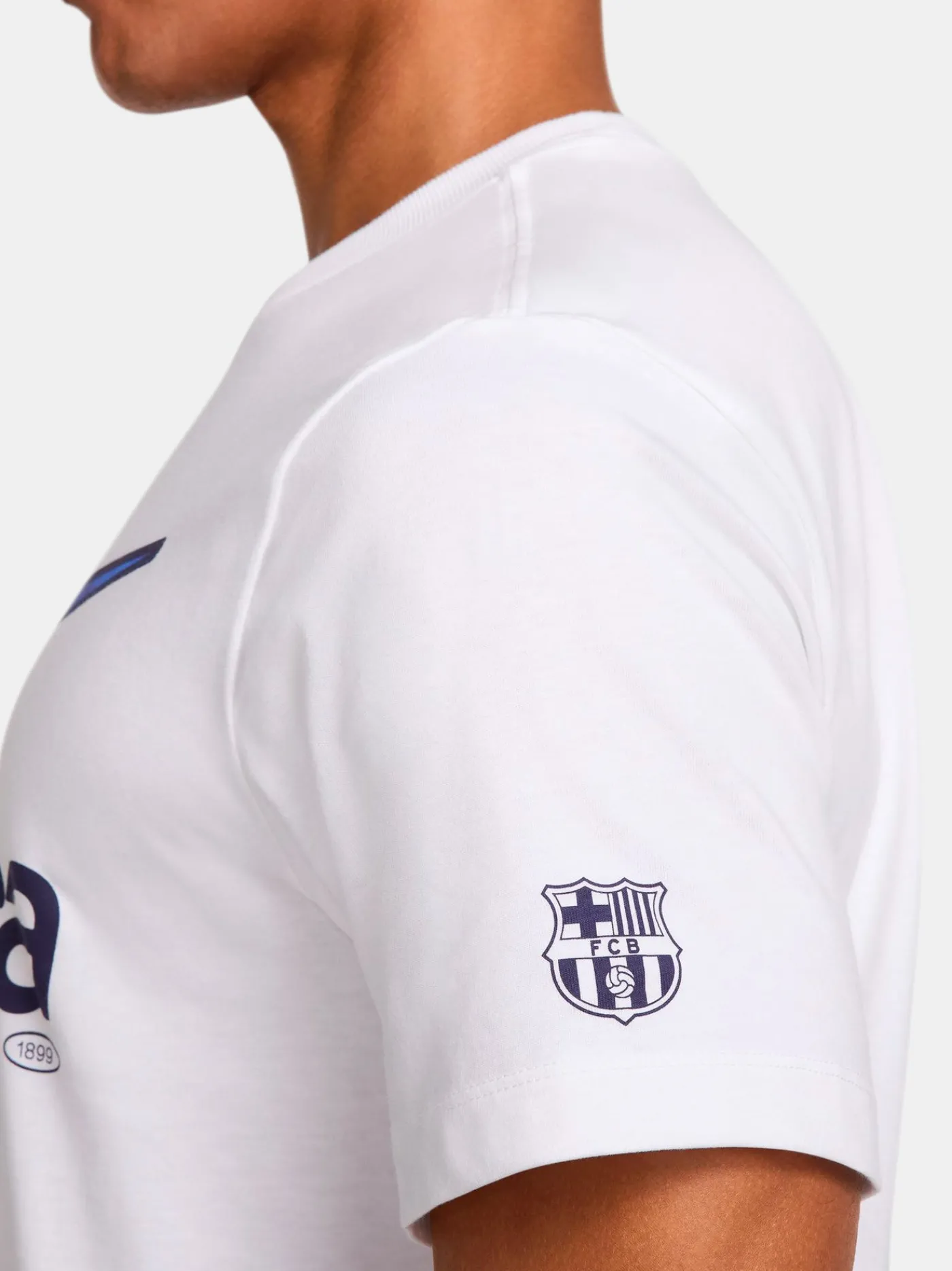 Luce tu pasión por el FC Barcelona con esta camiseta que fusiona estilo deportivo y comodidad casual. El detalle más destacado es el Swoosh en rojo y azul degradado, los colores característicos del club, junto al texto «Barça» en un moderno estilo tipográfico que celebra la identidad culé.
