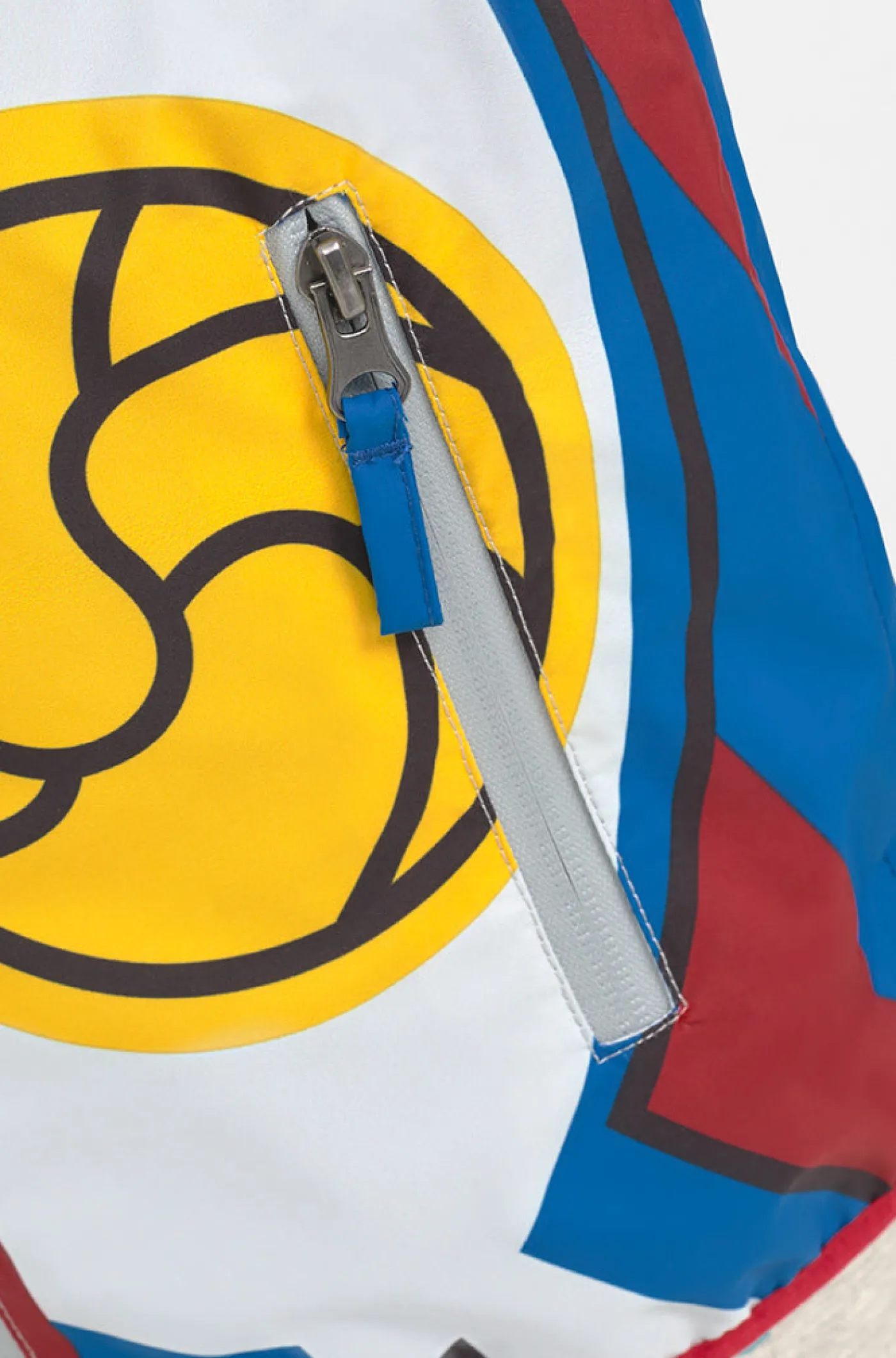 Chaqueta impermeable con capucha, diseñada con el la silueta del escudo del FC Barcelona. Cuello alto. Manga larga. Cierre con cremallera. Cintura ajustable y puños elásticos. Bolsillos delanteros: 2. Color: Azul y gris.