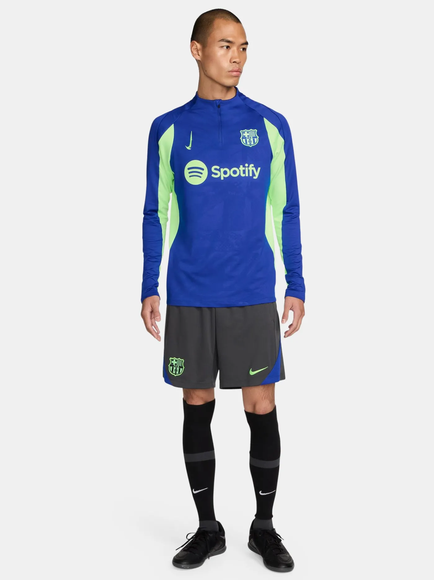 Pantalón corto de entrenamiento con parche del escudo del FC Barcelona y el logo de Nike en la parte inferior. Ambas pi…