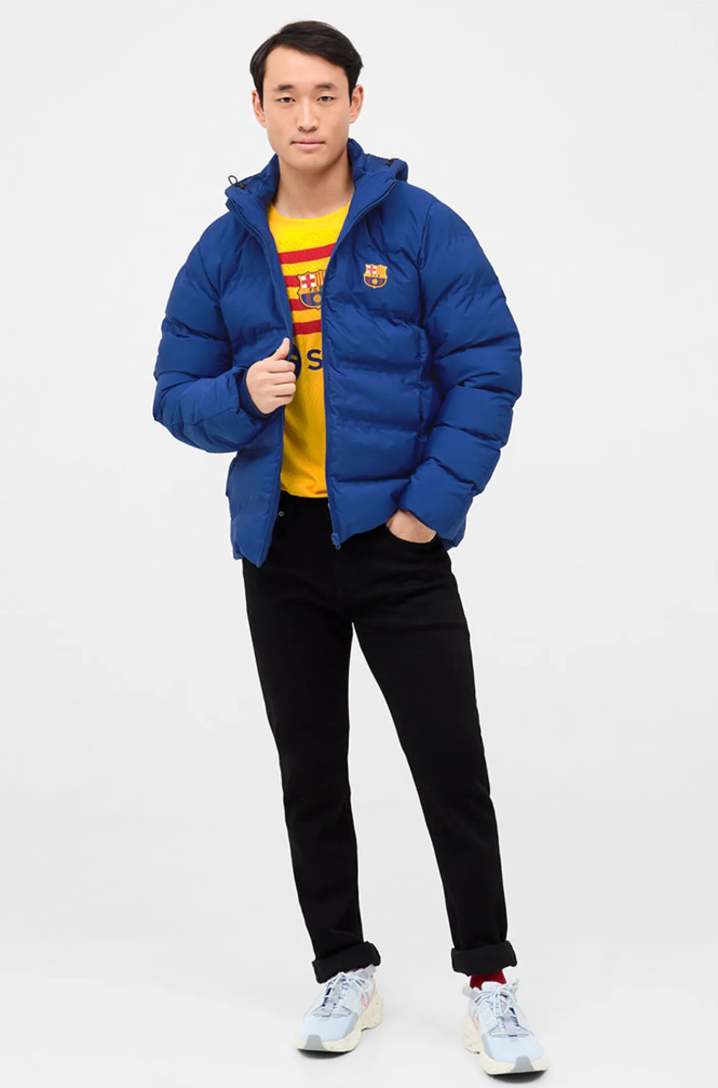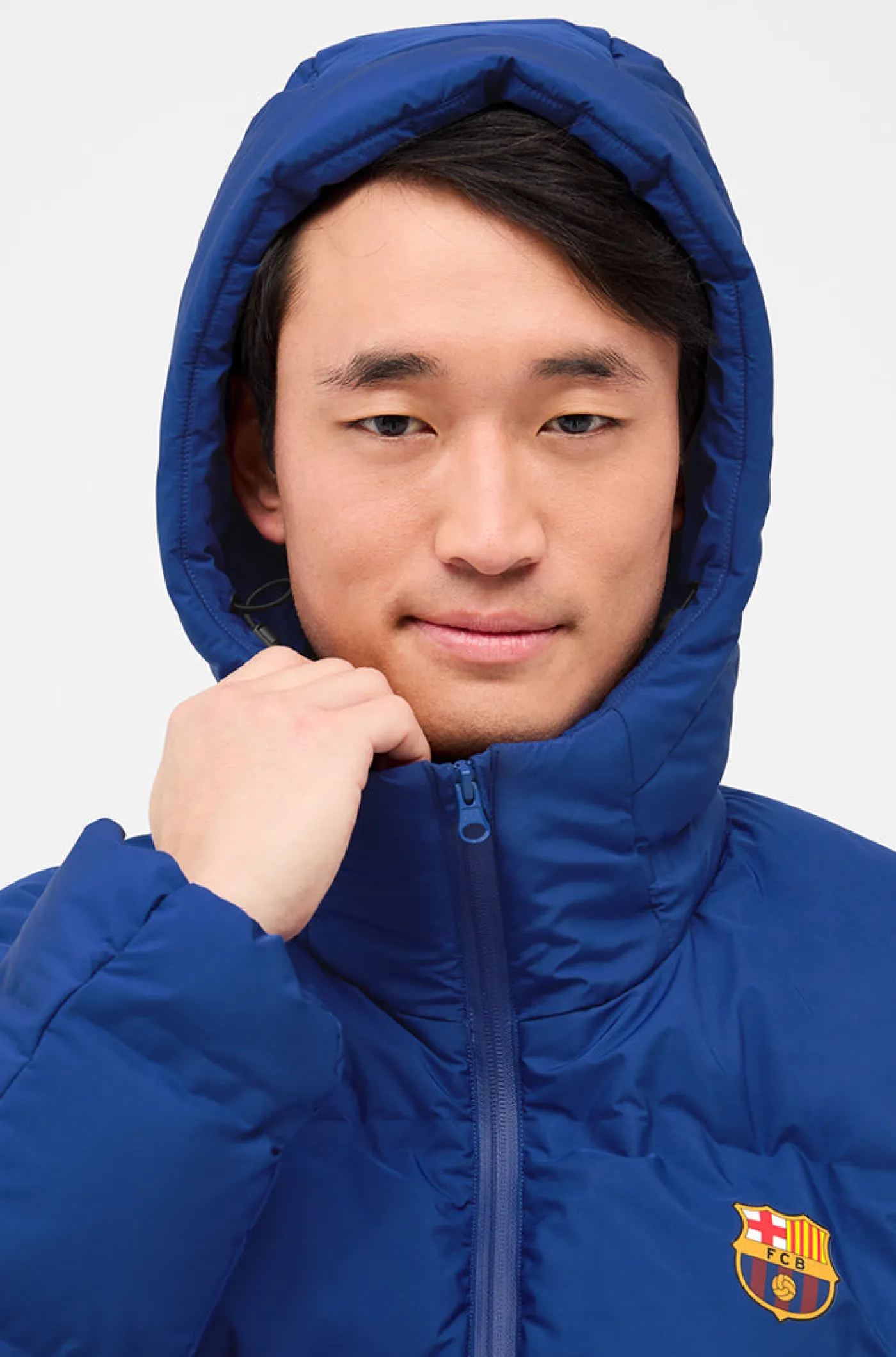 Abrigo acolchado del FC Barcelona. Cuenta con relleno sintético. Cuello con capucha. Manga larga. Cierre con cremallera. Bolsillos delanteros: 2 con cremallera. Color: Azul