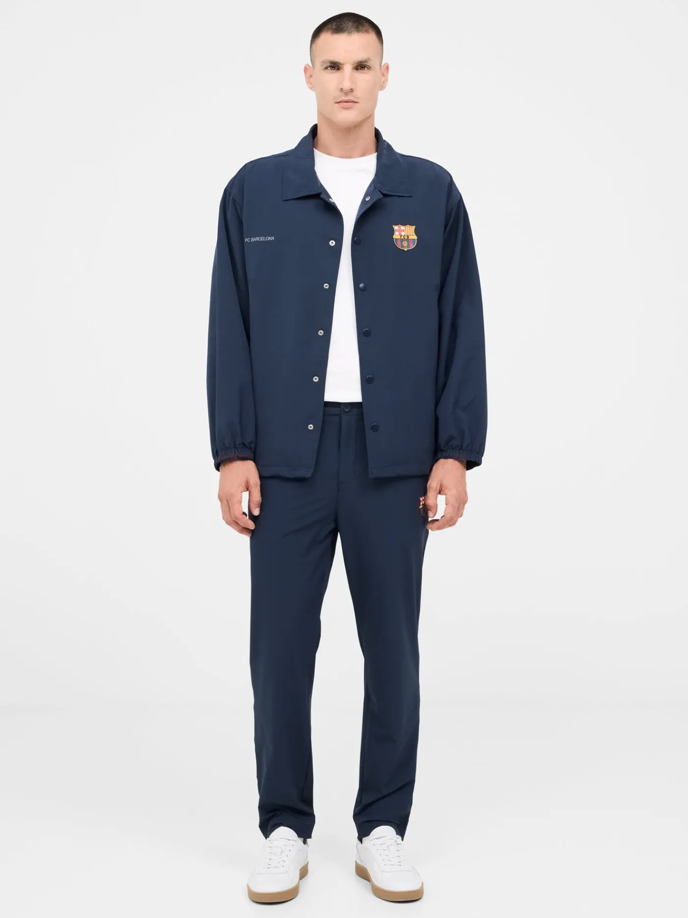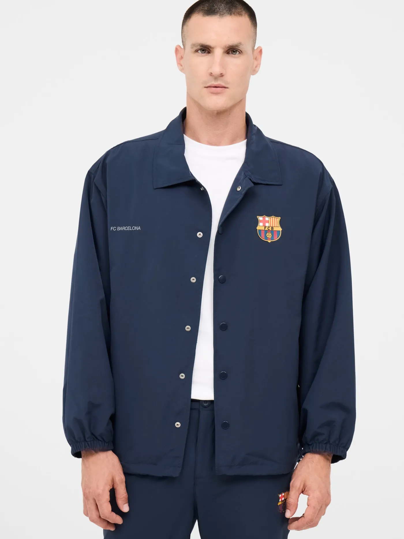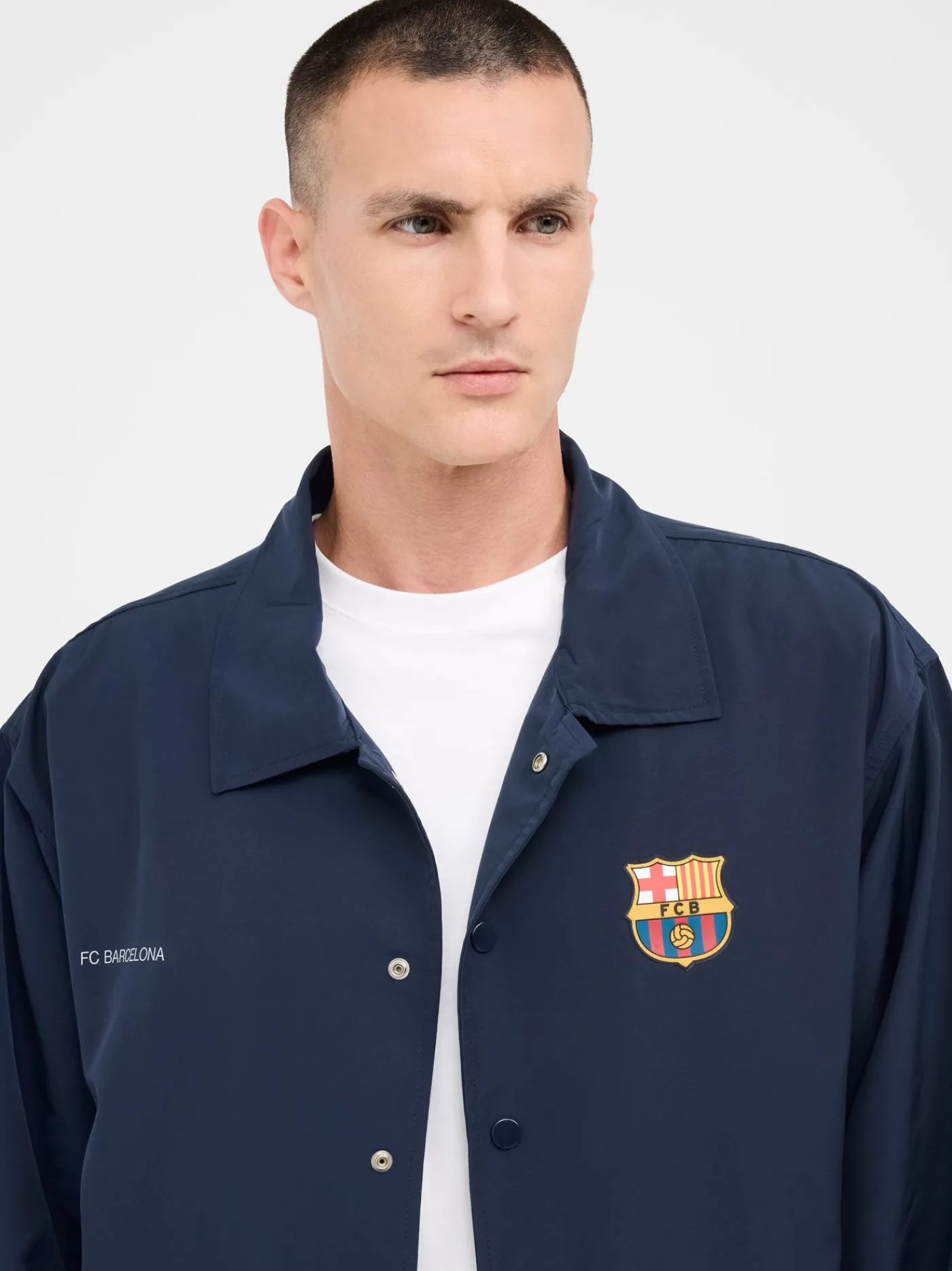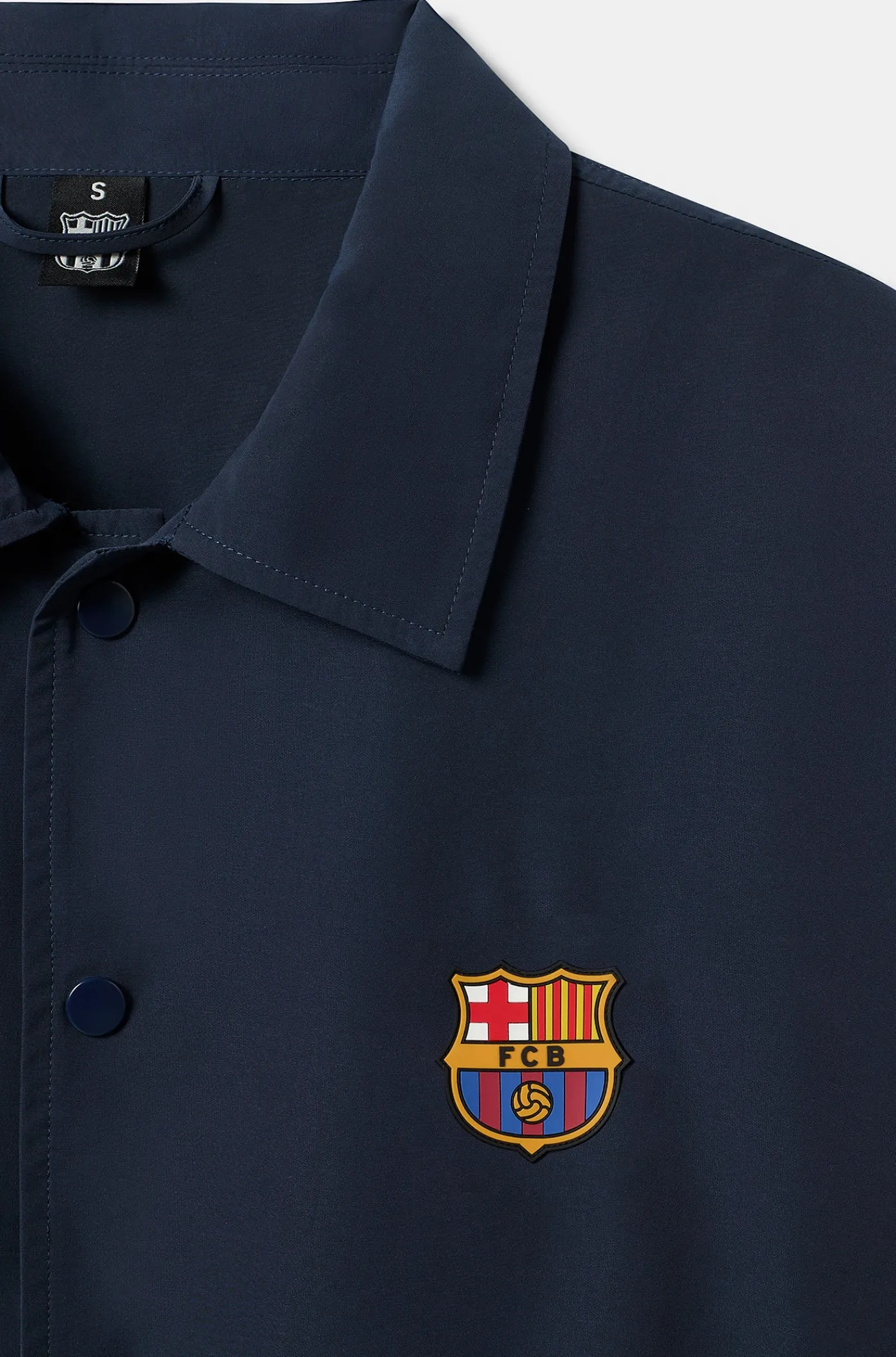 Chaqueta ligera de color azul marino. Cierre con botones y cuello de solapa. Escudo estampado en la parte frontal e ins…