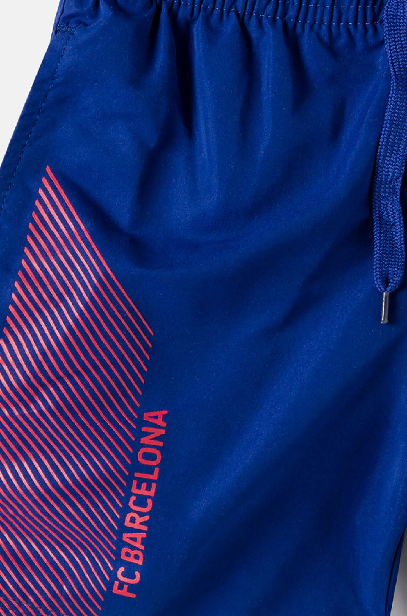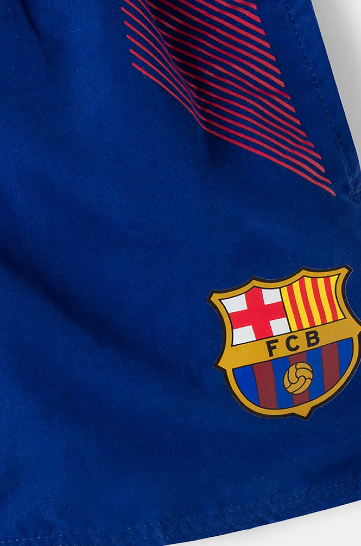 Bañador niño con el escudo del FC Barcelona y detalle de líneas diagonales en los laterales a contraste. Cintura elástica con cordones para mayor sujeción. Bolsillos delanteros: 2. Forro de rejilla fina. Color: Azulgrana