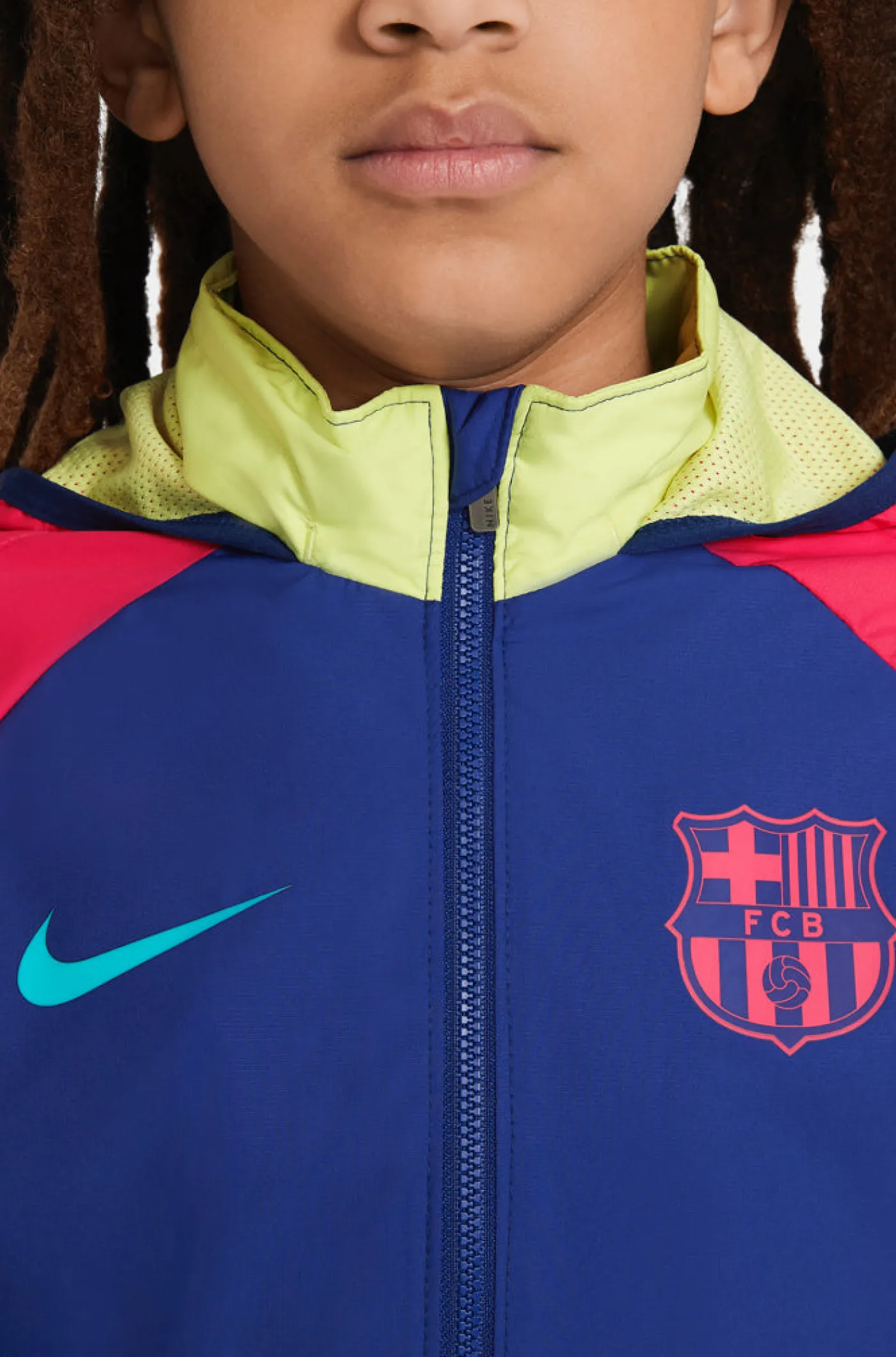 Chaqueta cortavientos para niños de entrenamiento con parche del escudo del FC Barcelona y logo de Nike en el pecho. Cu…