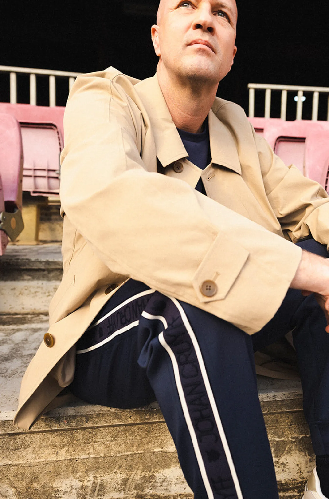Pantalón de la colección del FC Barcelona que homenajea a Johan Cruyff a través de frases que llevan su sello y que transmiten sus conocimientos de fútbol y de la vida. Texto de «Johan Cruyff + Barça» a contraste en la parte lateral del pantalón. Detalle de la silueta del escudo del FC Barcelona bordado a contraste. Cintura elástica con cordones en la parte interior. Bolsillos delanteros: 2. Bolsillo trasero: 1. Bajos elásticos. Color: azul marino y beige.