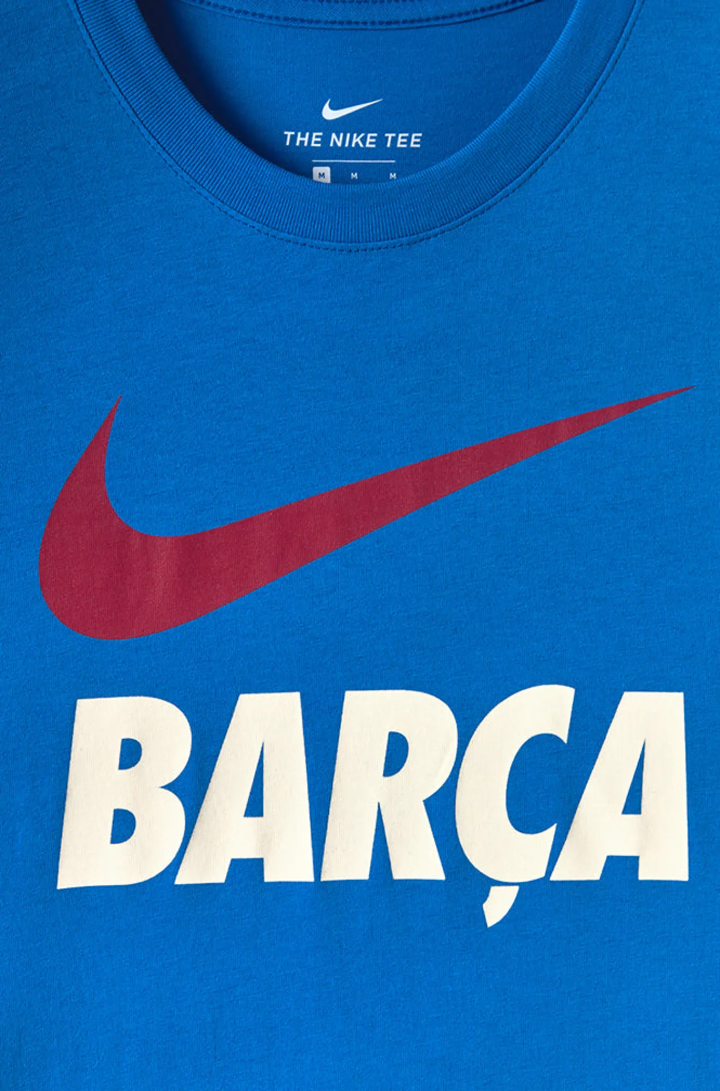 Camiseta para mujer con la rotulación de “Barça” y logo de Nike estampados en el pecho a contraste. Su tejido de algodón la hace una prenda cómoda y ligera. Cuello redondo. Manga corta. Color: Azul marino.