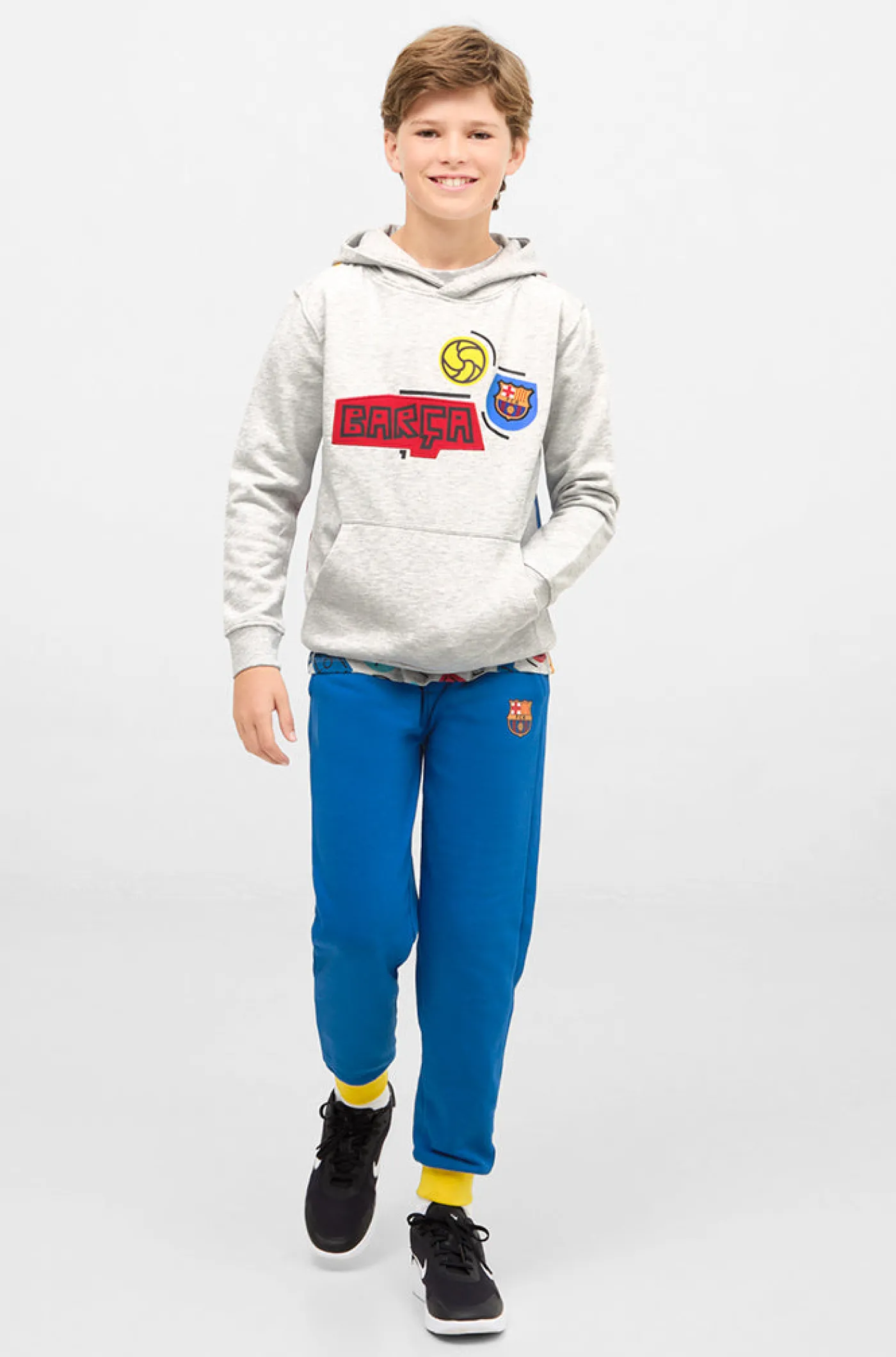 Pantalón para niños y niñas del FC Barcelona. Detalle del escudo en la parte frontal y lettering «BARÇA» en el bolsillo posterior. Cintura elástica con cordones para mayor sujeción. Bajos elásticos a contraste. Bolsillos delanteros: 2 y trasero:1. Color: azul.