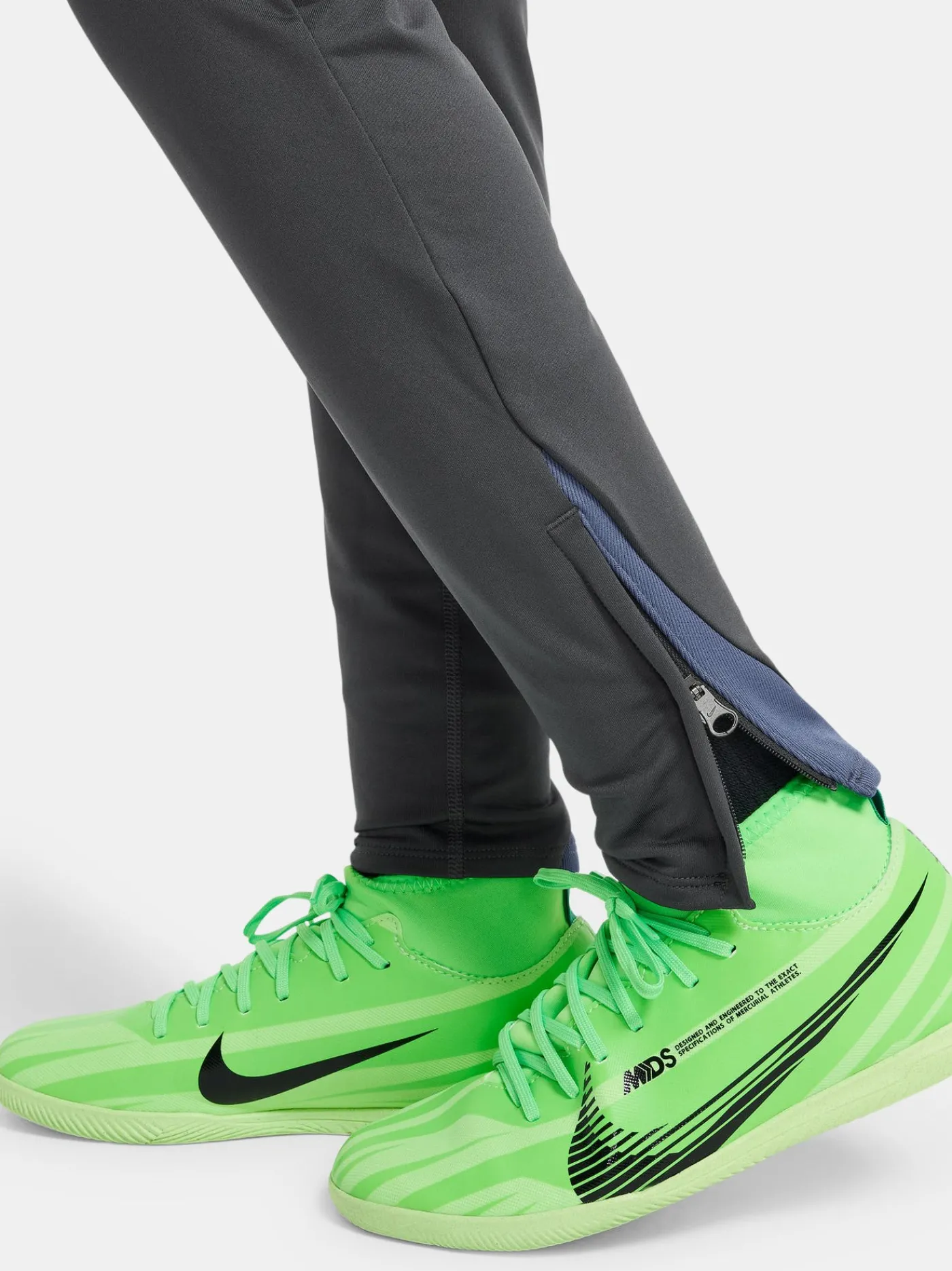 Con detalles de diseño diseñados específicamente para las estrellas en ascenso del fútbol, un ajuste delgado y estilizado garantiza que nada se interponga entre usted y el balón. La tecnología absorbente de sudor te ayuda a mantenerte fresco y sereno mientras perfeccionas tus habilidades. La tecnología Dri-FIT aleja el sudor de la piel para una evaporación más rápida y te ayuda a mantenerte seco y cómodo. Los puños con cremallera hacen que los pantalones sean fáciles de poner y quitar sobre los zapatos.