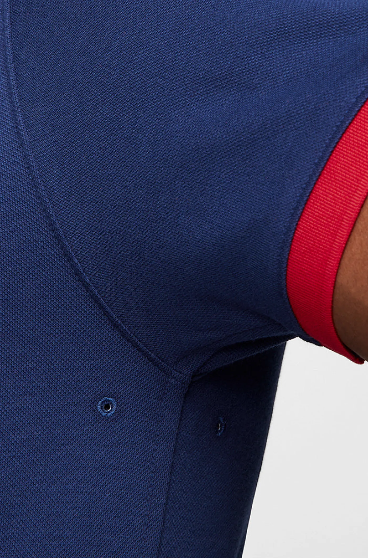 Polo Culers de manga corta con detalle de franjas blaugrana en ambas mangas. Corte asimétrico. Cuello con solapas. Cierre con 2 botones en el pecho. Aberturas en los laterales. Su tejido de algodón la convierte en una prenda cómoda y ligera. Color: azul marino.