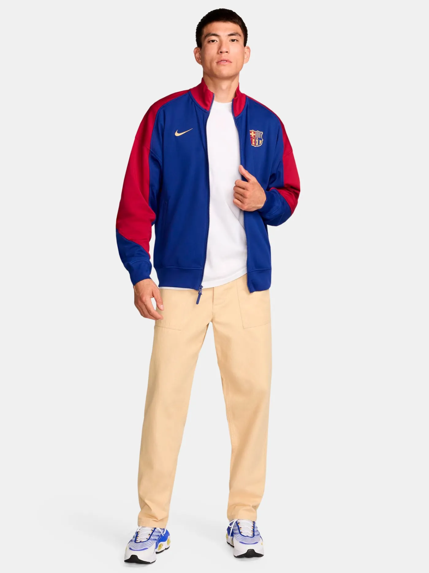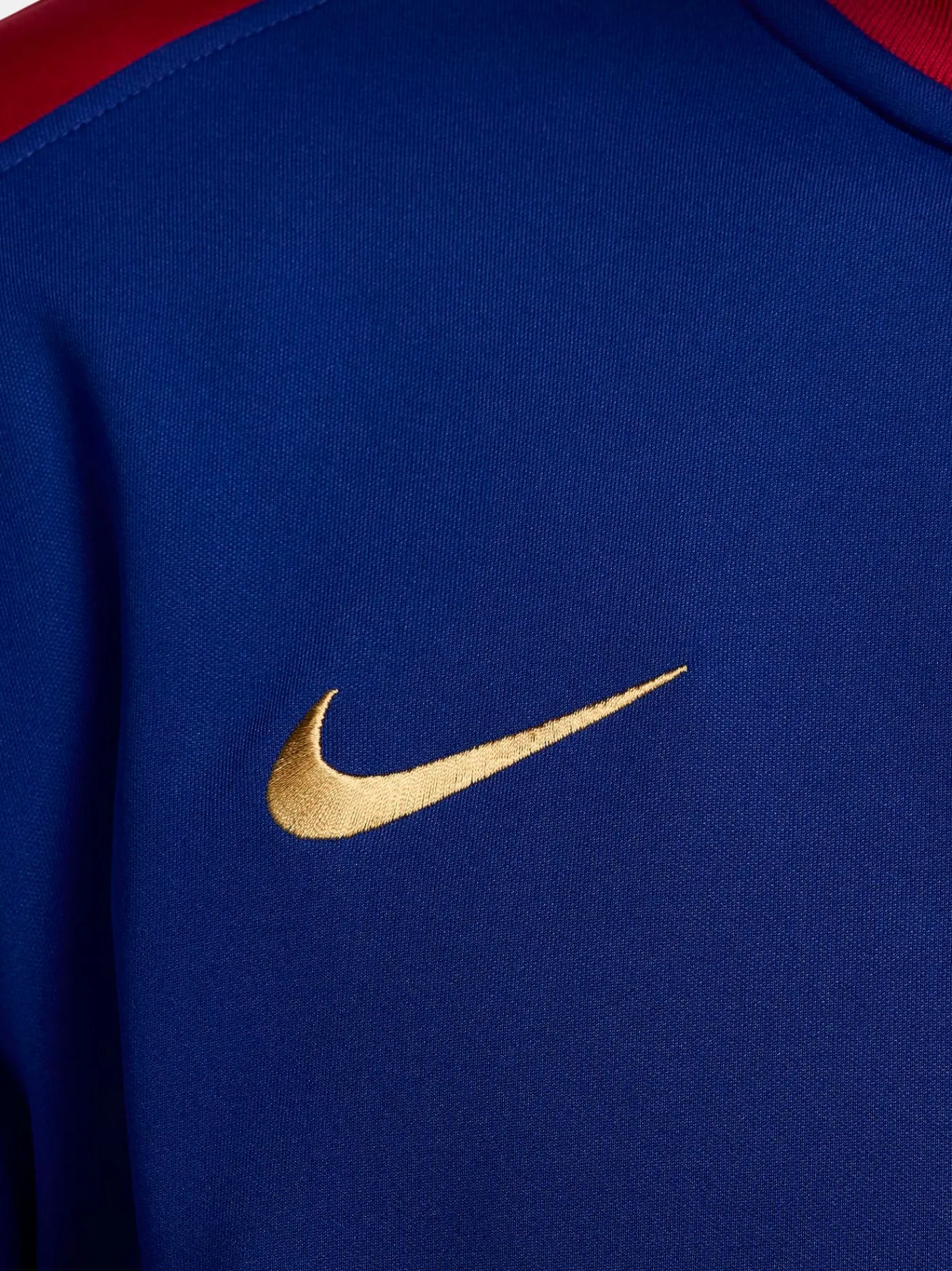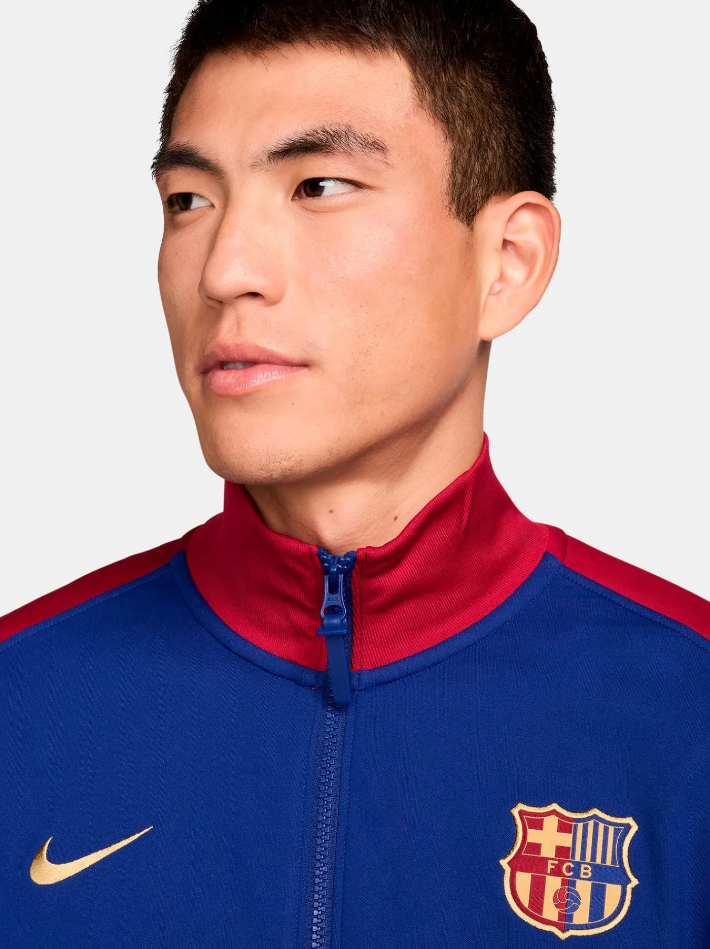 Chaqueta prepartido del FC Barcelona 24/25. Diseñada con el parche del escudo del FC Barcelona y el logo de Nike bordad…