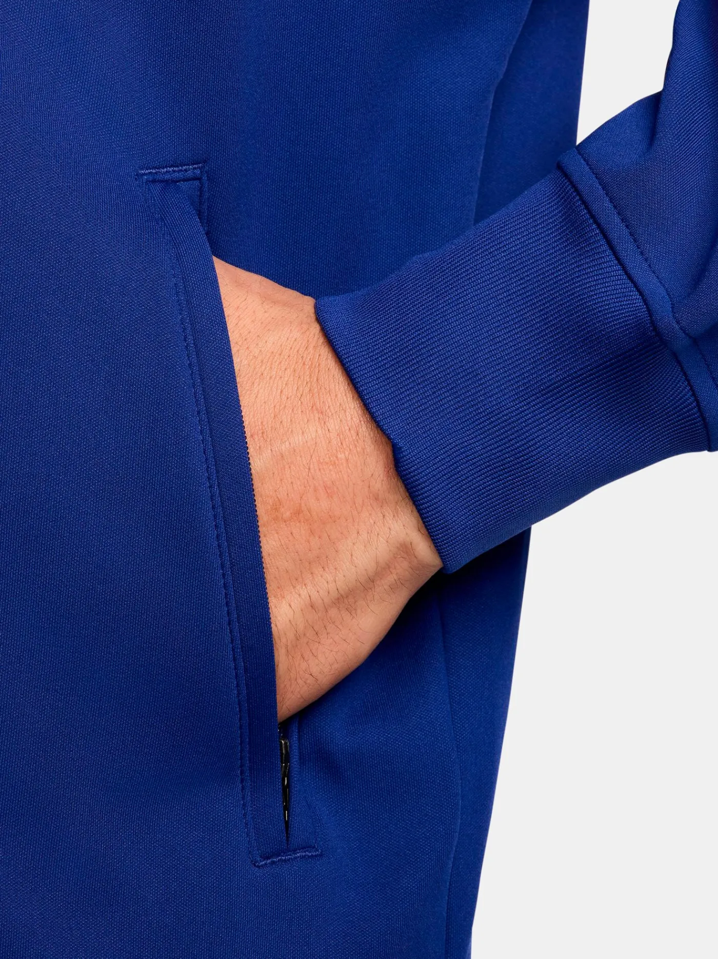 Chaqueta prepartido del FC Barcelona 24/25. Diseñada con el parche del escudo del FC Barcelona y el logo de Nike bordado. Cuello mao. Manga larga. Cierre con cremallera. Cintura y puños elásticos. Bolsillos delanteros: 2 con cremallera.