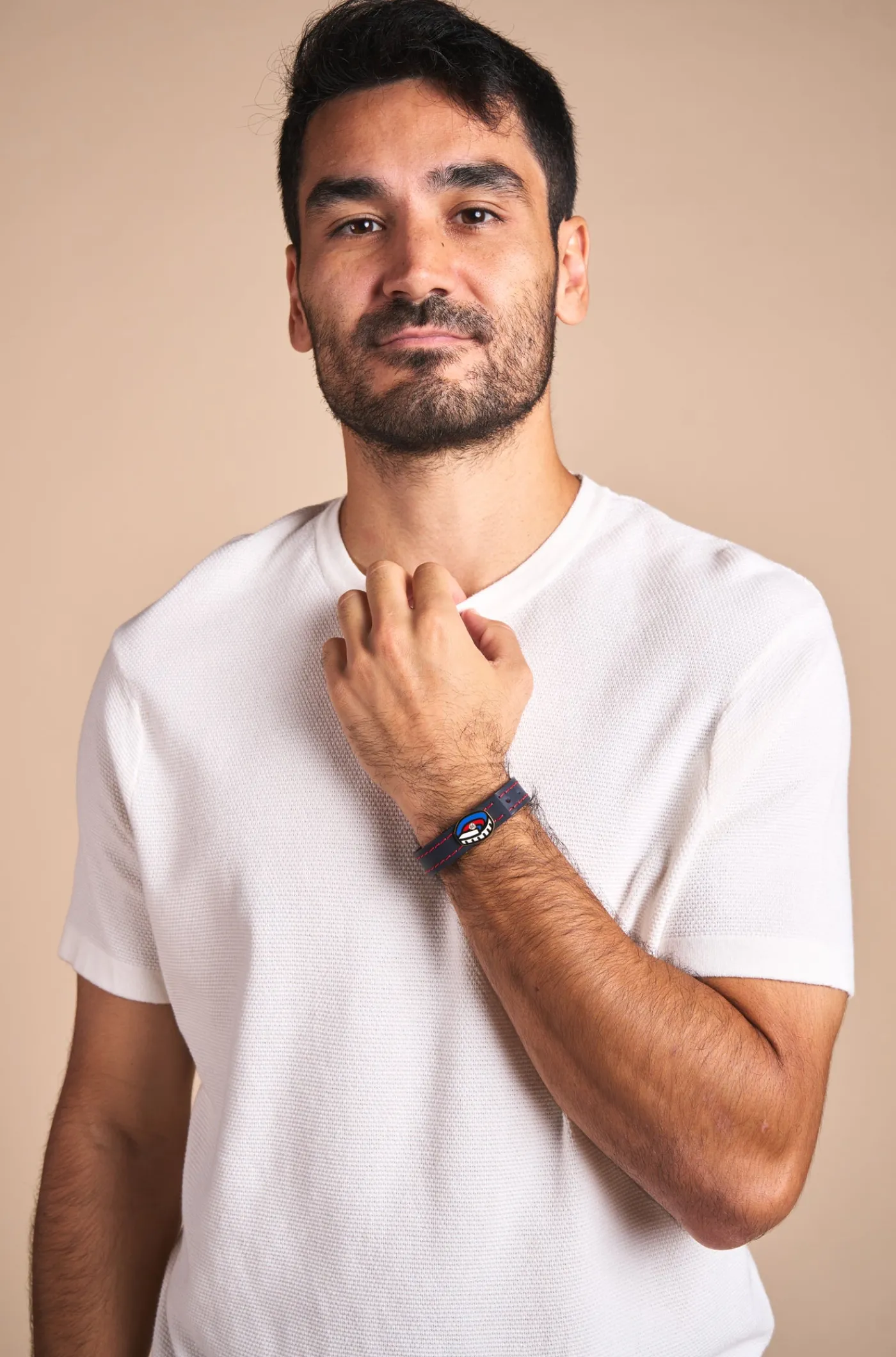 Pulsera con un diamante de 0,10 quilates engastado en una insignia de coleccionista del eterno Spotify Camp Nou, acabada en plata bañada en oro y esmalte.