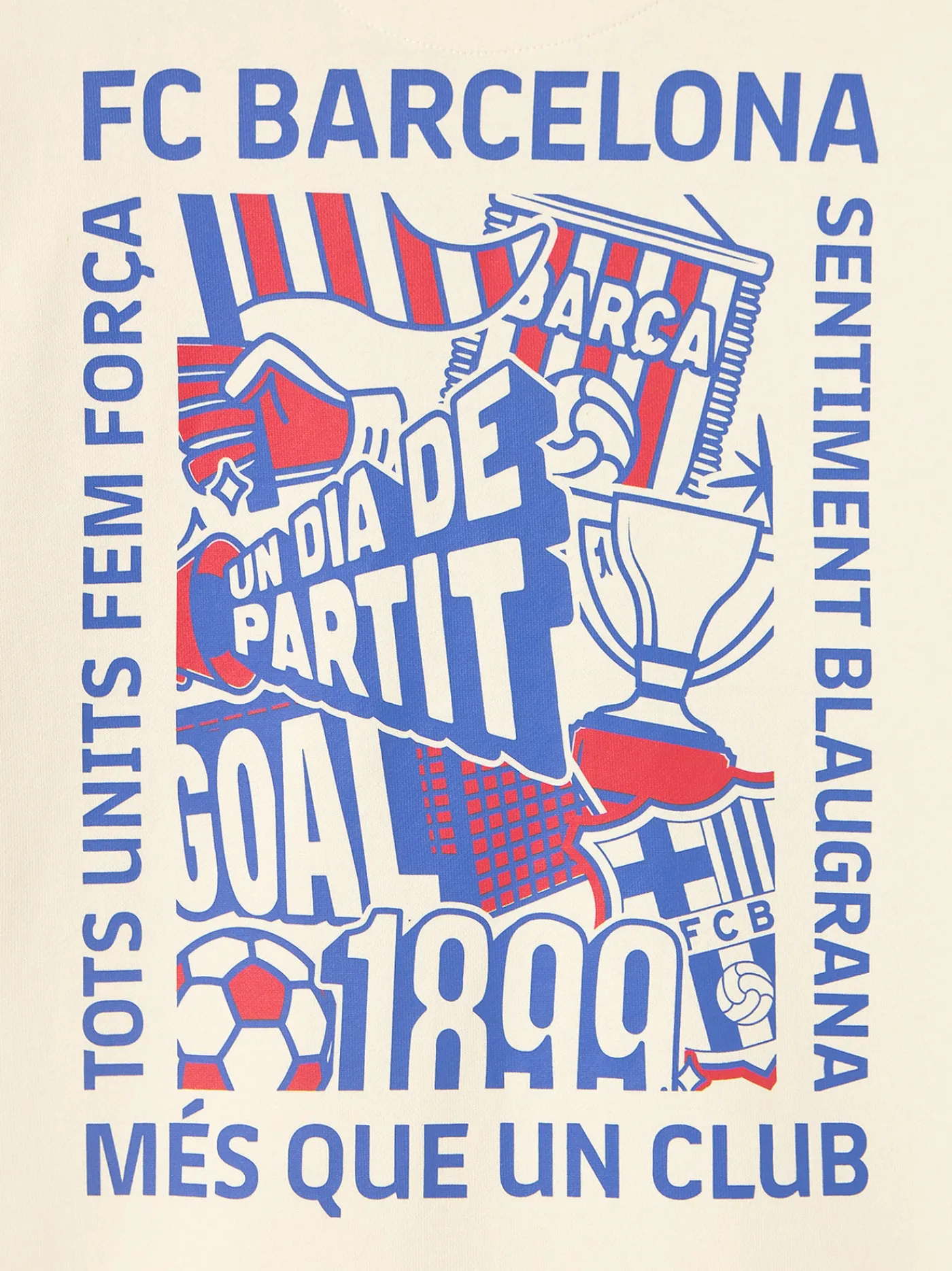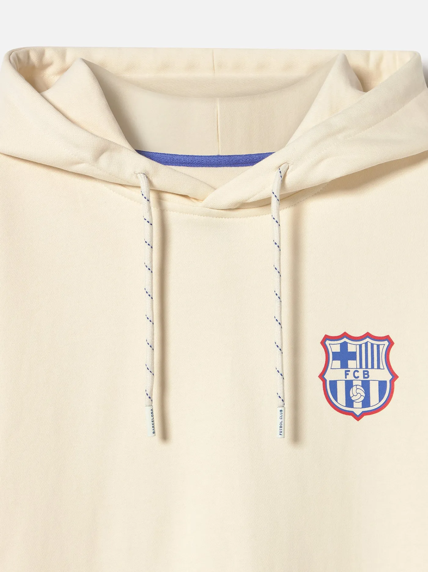 Sudadera con capucha en color crudo. Detalle del escudo impreso en el pecho e impresión en la espalda con un diseño que incluye frases como «Un día de partido». Ajuste con banda elástica en la cintura y las muñecas. Bolsillo central con apertura a ambos lados. Color: crudo.