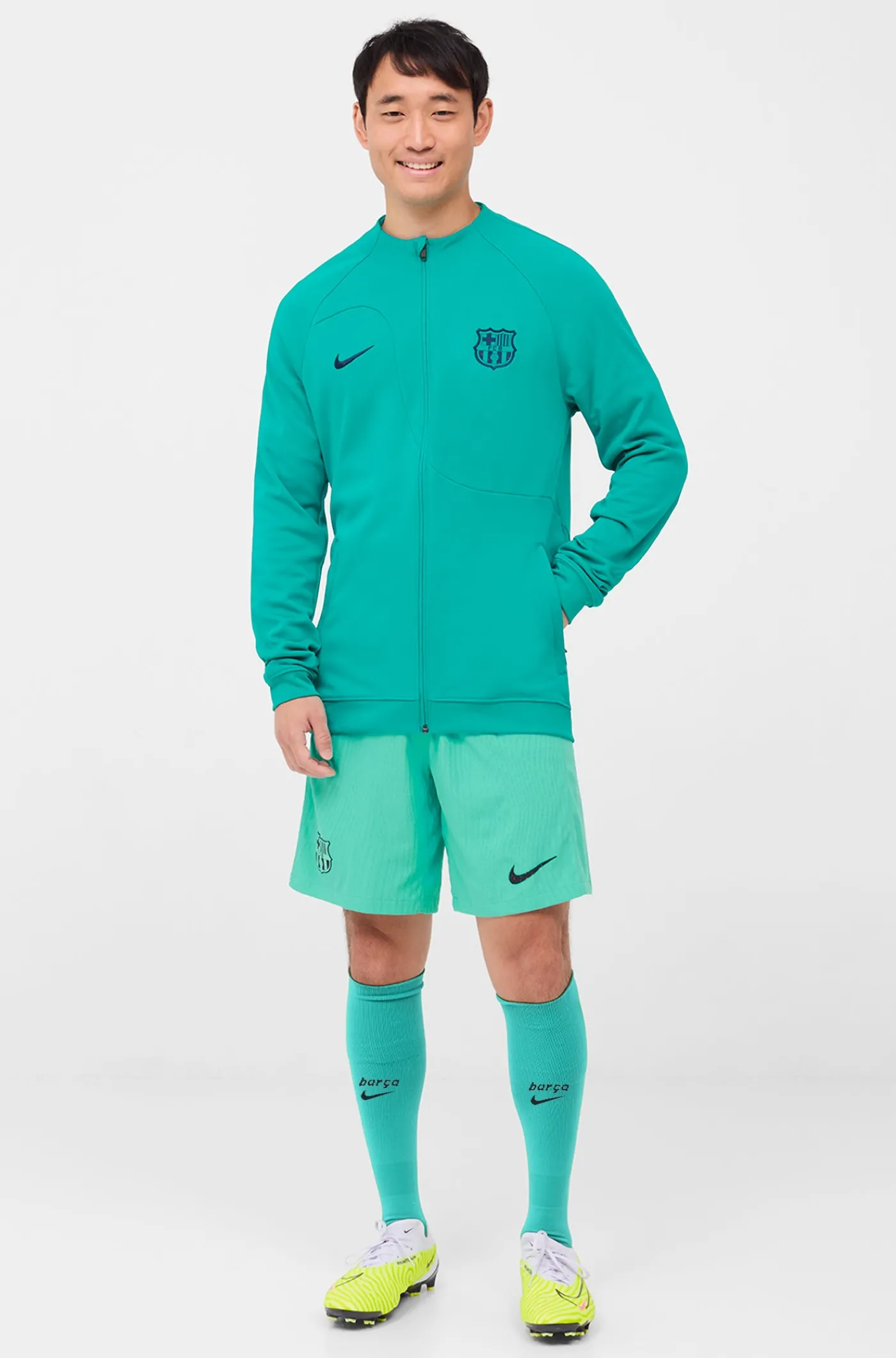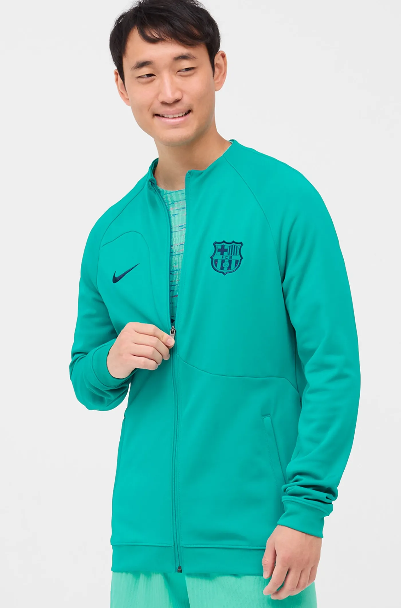 Chaqueta prepartido del FC Barcelona 23/24. Diseñada con el parche del escudo del FC Barcelona y el logo de Nike bordad…