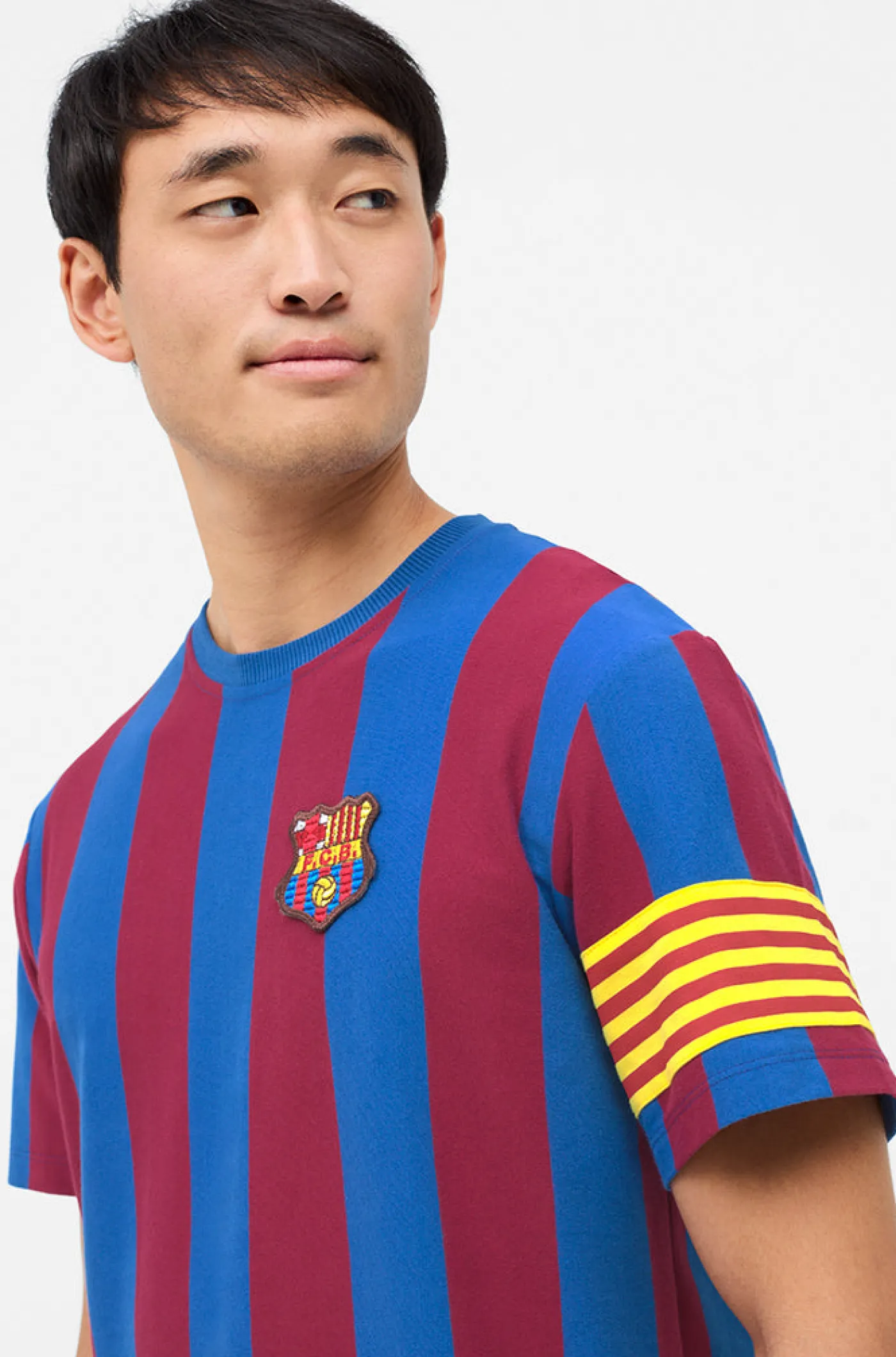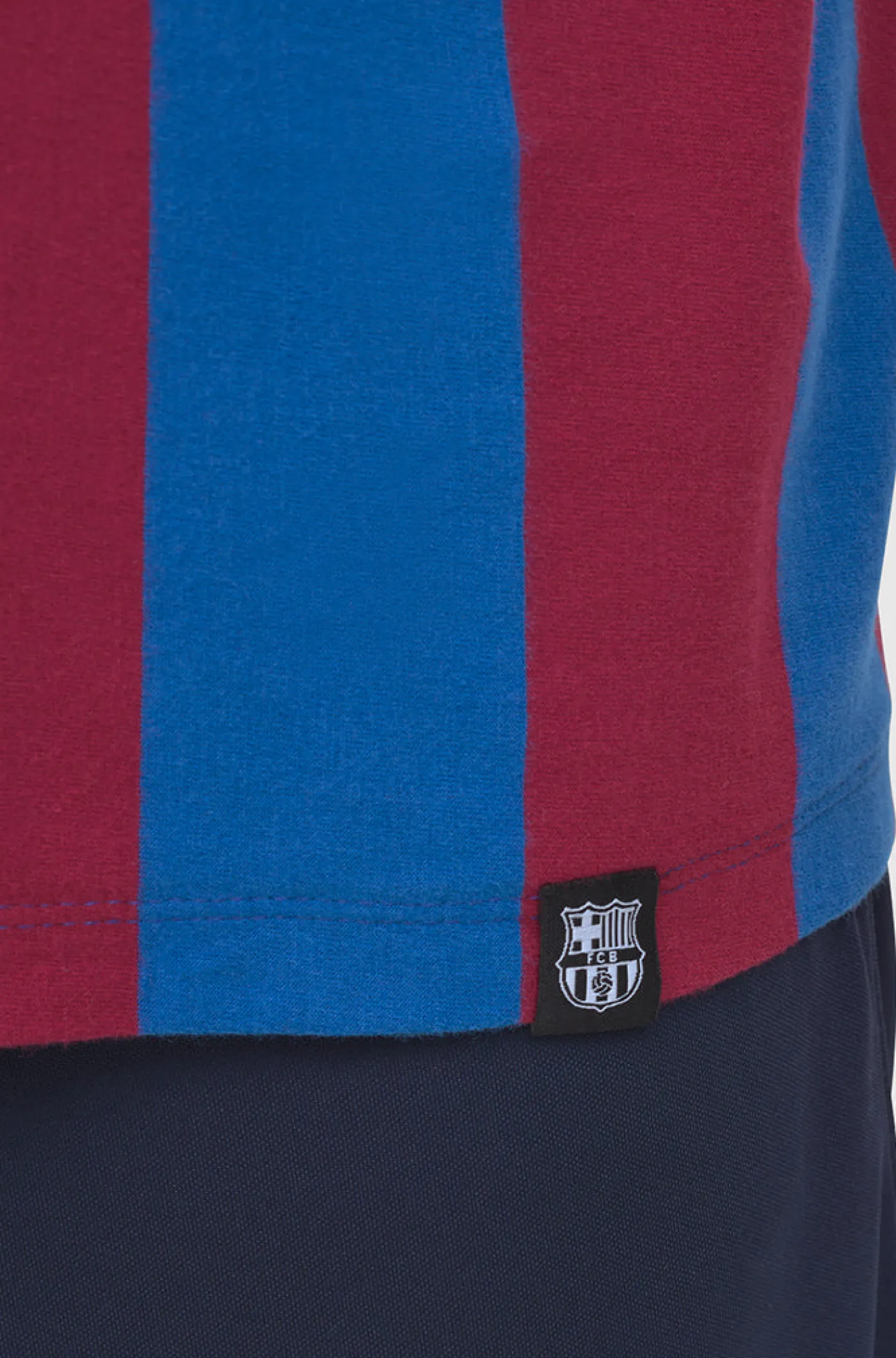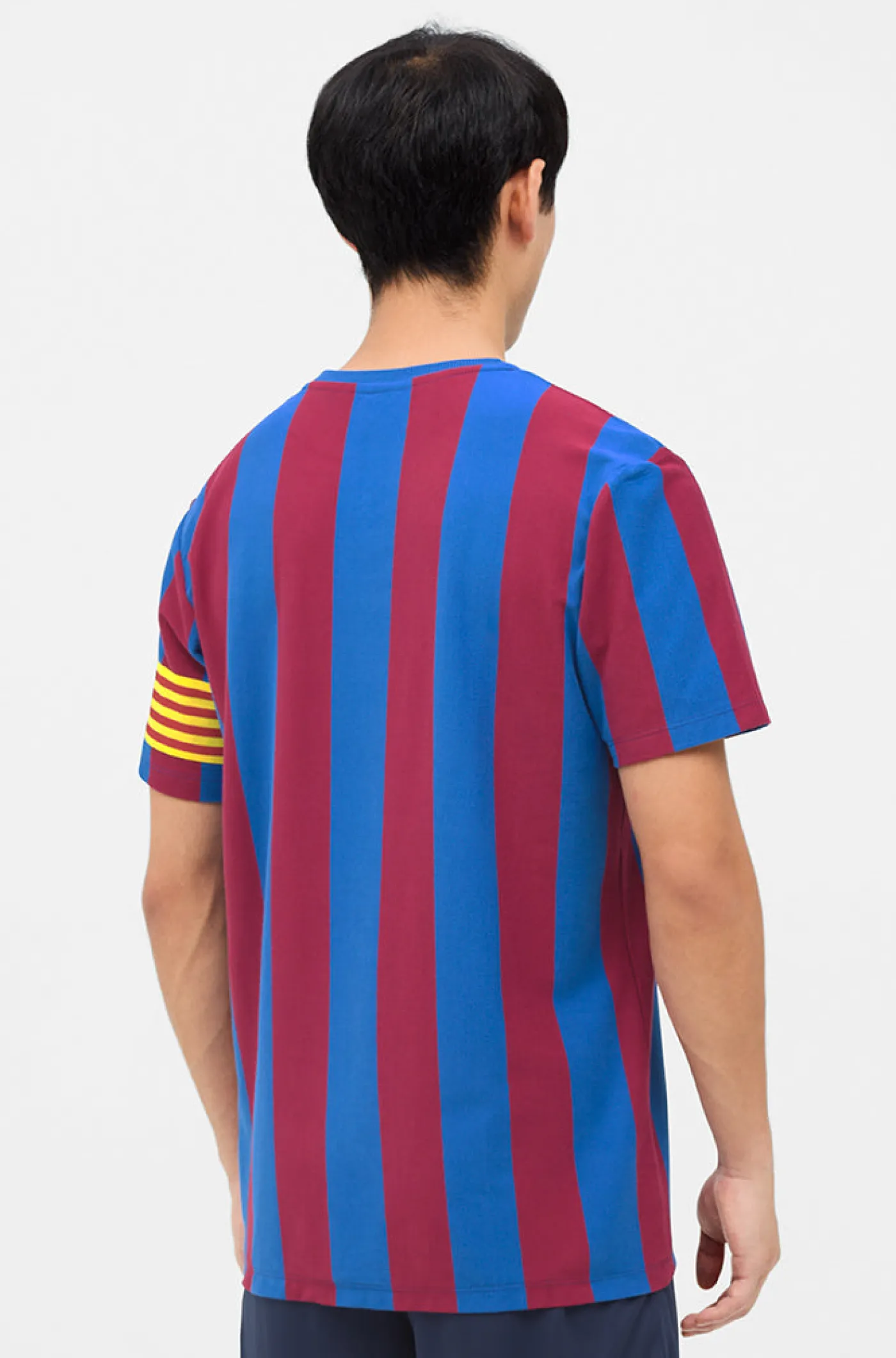 Camiseta de manga corta con el detalle del brazalete de capitán. Con este producto se quiere rendir homenaje a jugadores como Joaquim Rifé, Johan Cruyff, José Mari Bakero, Pep Guardiola, Carles Puyol, Xavi Hernández, Andrés Iniesta o Lionel Messi, que han lucido el brazalete de capitán del FC Barcelona a lo largo de la historia de nuestro Club.Su tejido de algodón la hace una prenda cómoda y ligera. Brazalete de capitán en la manga izquierda incorporado al diseño clásico con franjas azulgranas verticales y escudo bordado del FC Barcelona. Cuello en V. Manga corta. Color: Azulgrana. Venta exclusiva de Barça Stores.