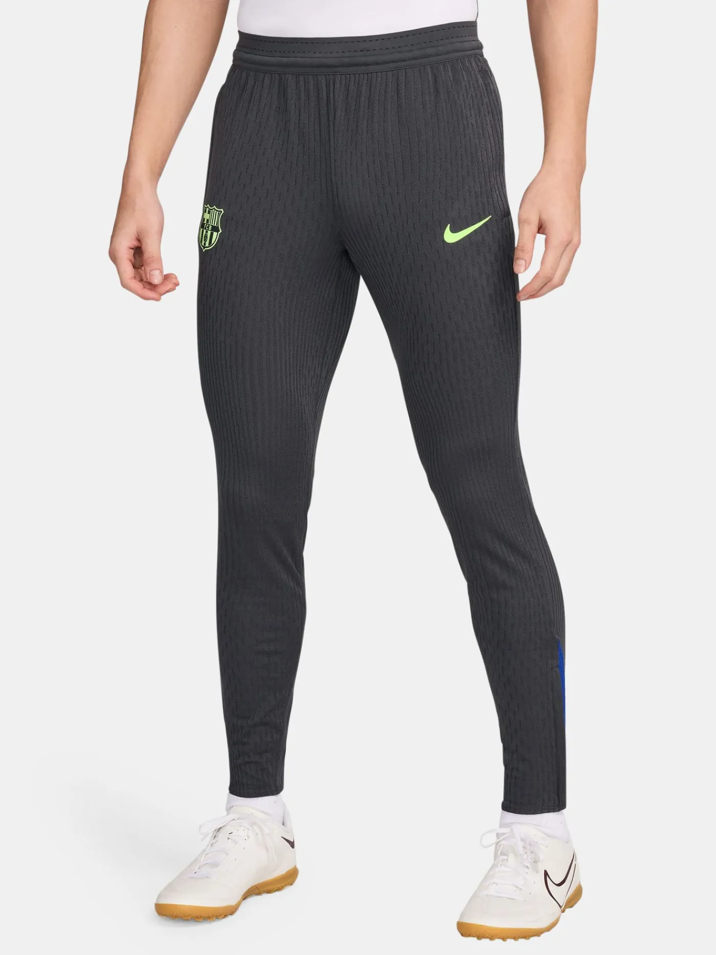 Pantalones de entrenamiento edición Player con parche con el escudo del FC Barcelona y logotipo de Nike. Cintura elástica con cordones. La parte inferior tiene cremalleras laterales para mayor comodidad. Paneles de ventilación. Su tecnología Nike Dri-FIT ADV cuenta con tejido elástico y de secado rápido para evitar rozaduras y combatir la humedad. Color: gris