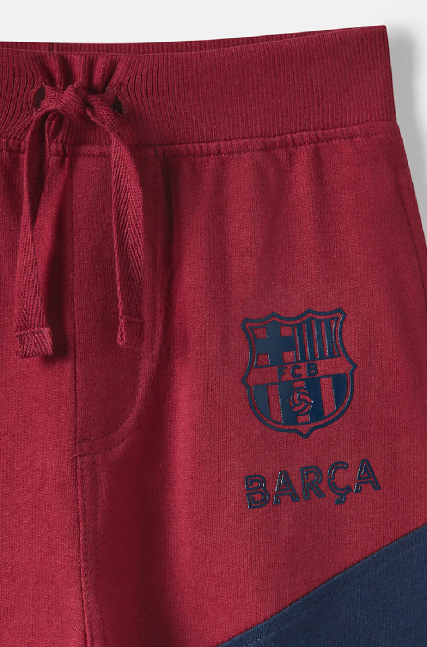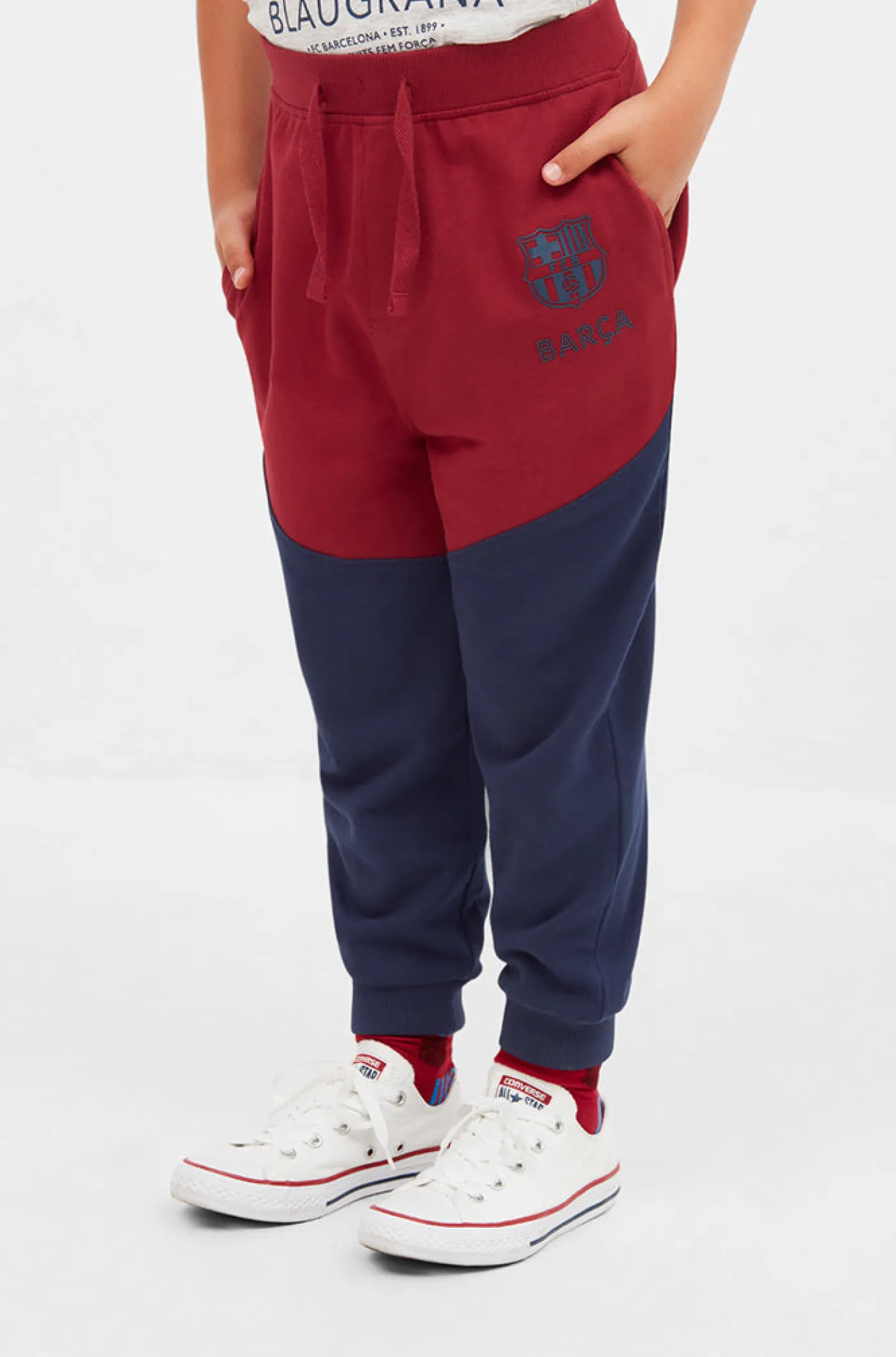 Pantalón deportivo bicolor para niño con el escudo y logo en relieve del FC Barcelona. Cintura elástica y cordones. B…