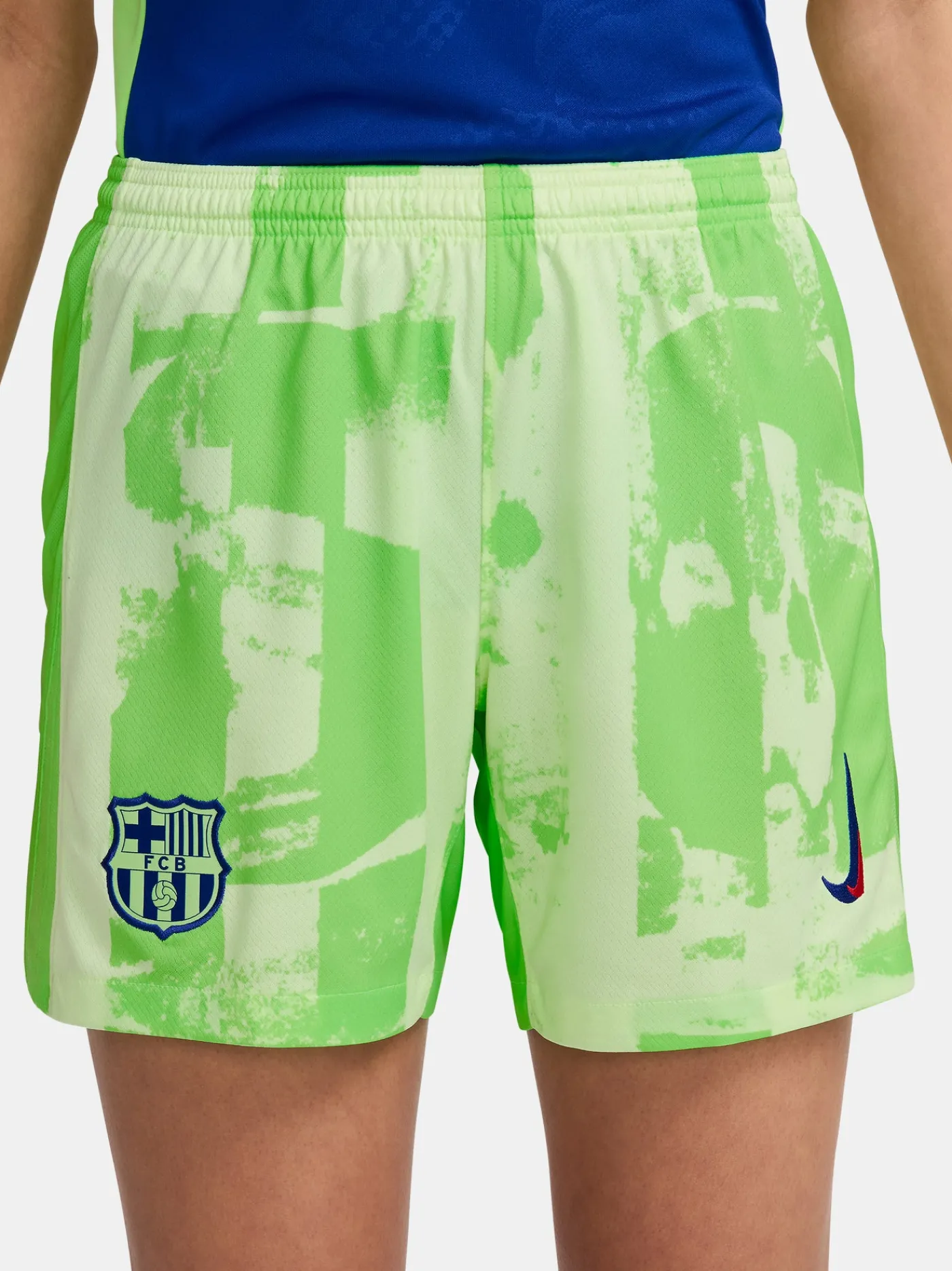 Pantalón corto de la tercera Equipación 24/25 para mujer. Con el parche del escudo del FC Barcelona y el logo de Nike bordado. Cintura elástica con cordones en el interior. Tecnología Dri-FIT de Nike. Color: lima