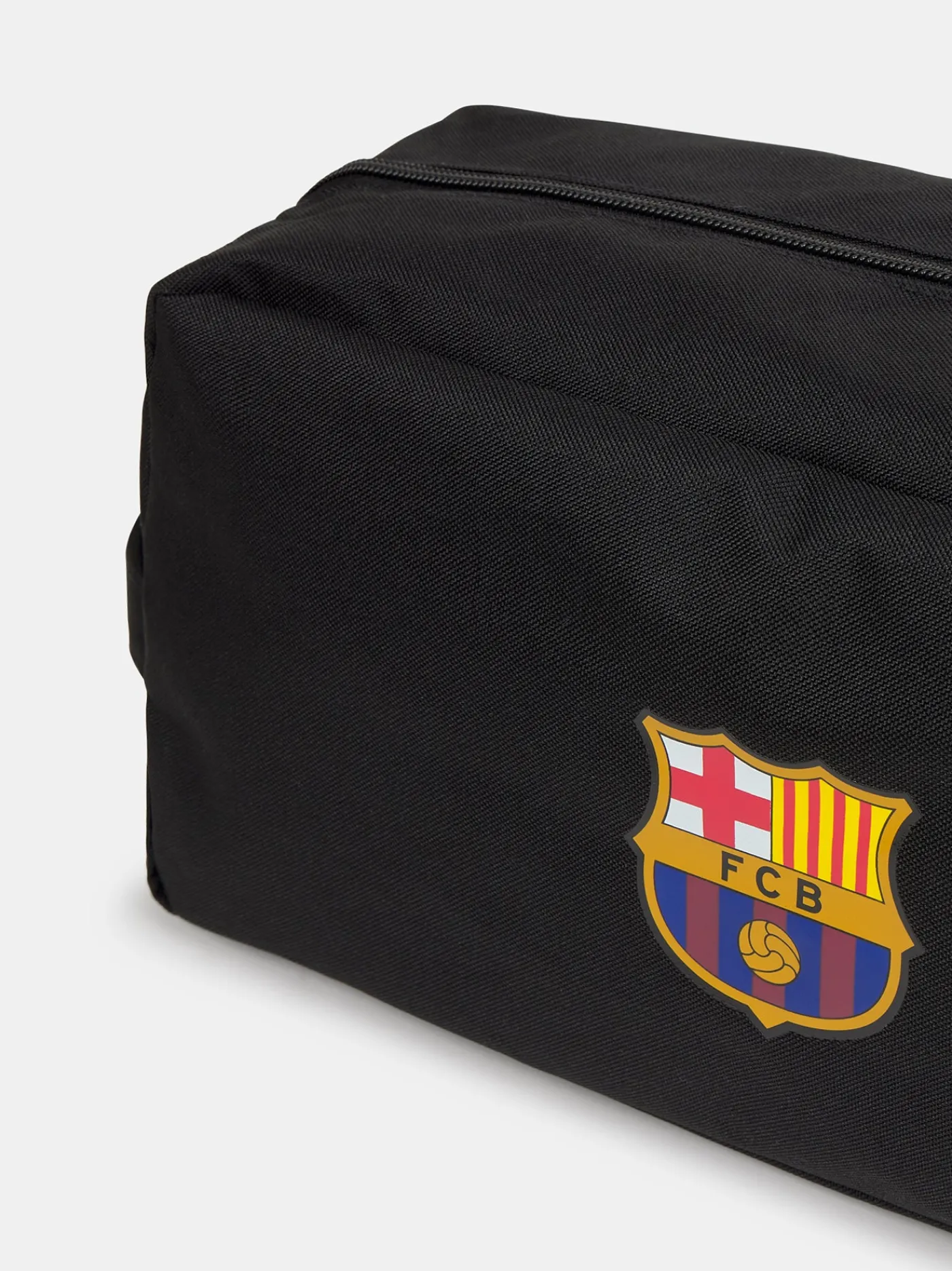 Bolsa para zapatillas del FC Barcelona. Escudo del FC Barcelona centrado en relieve. Bolsa que permite guardar las zapatillas de entrenamiento. Compartimento con cremallera. Asa de mano. Color negro.