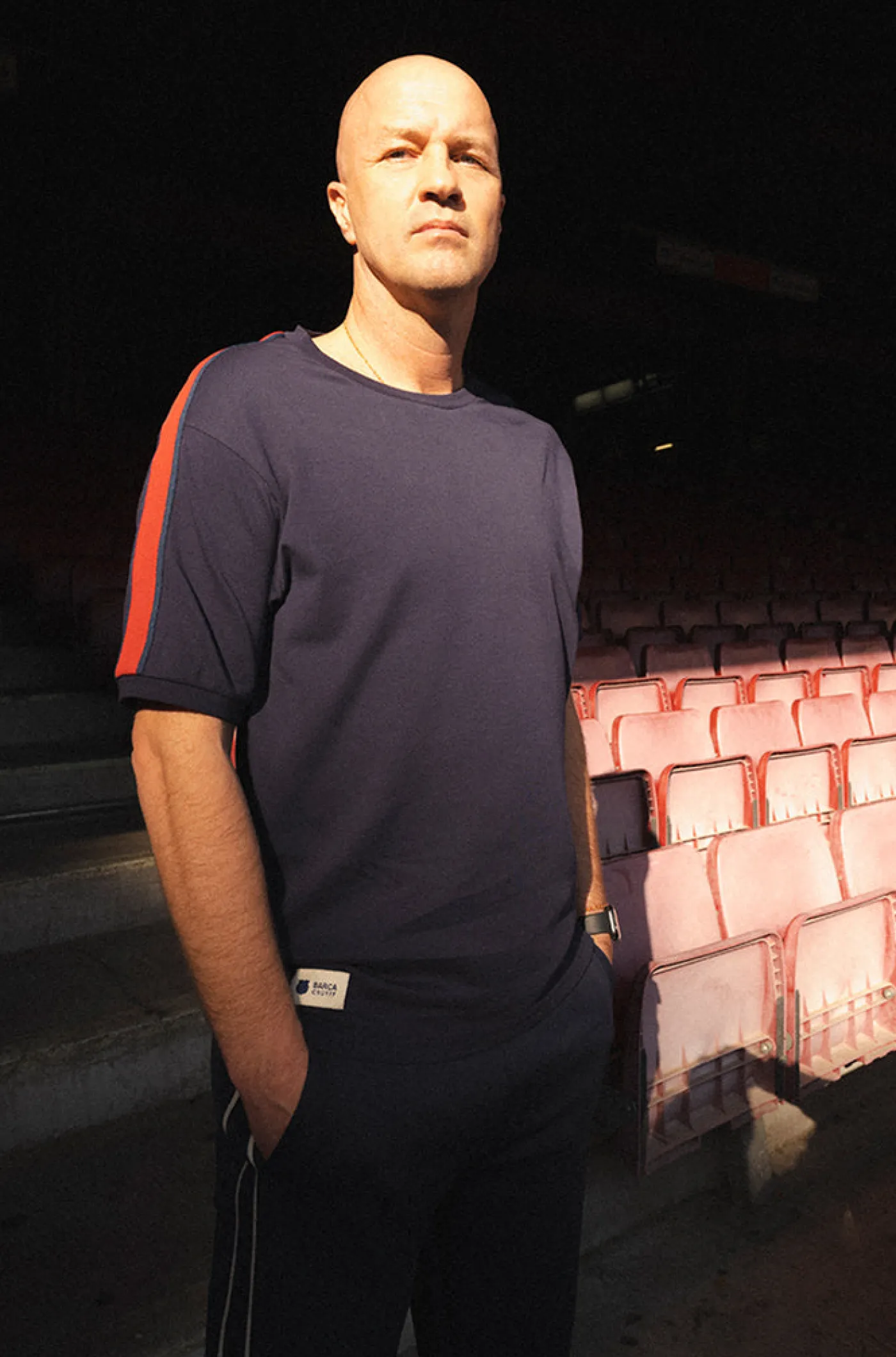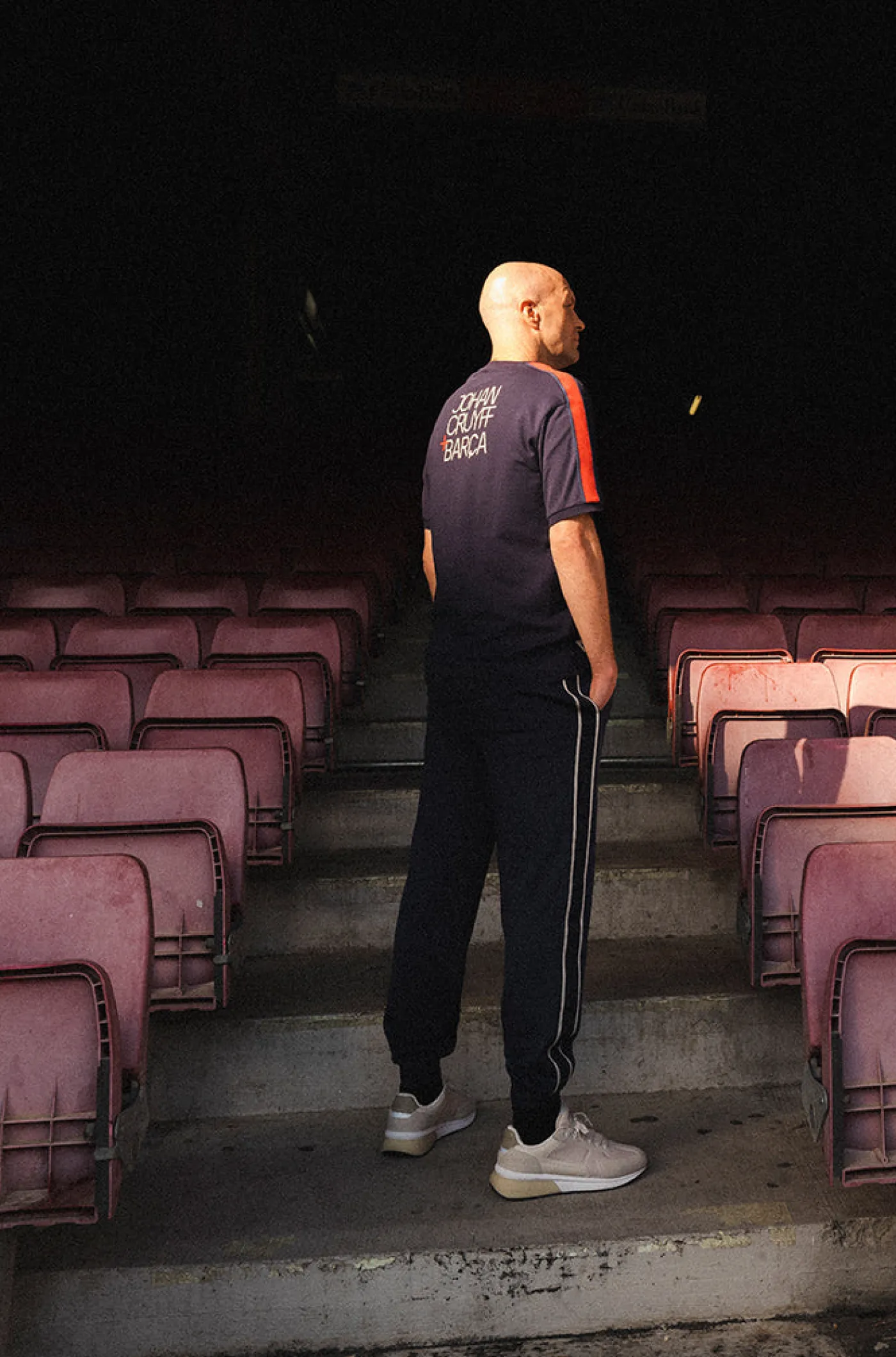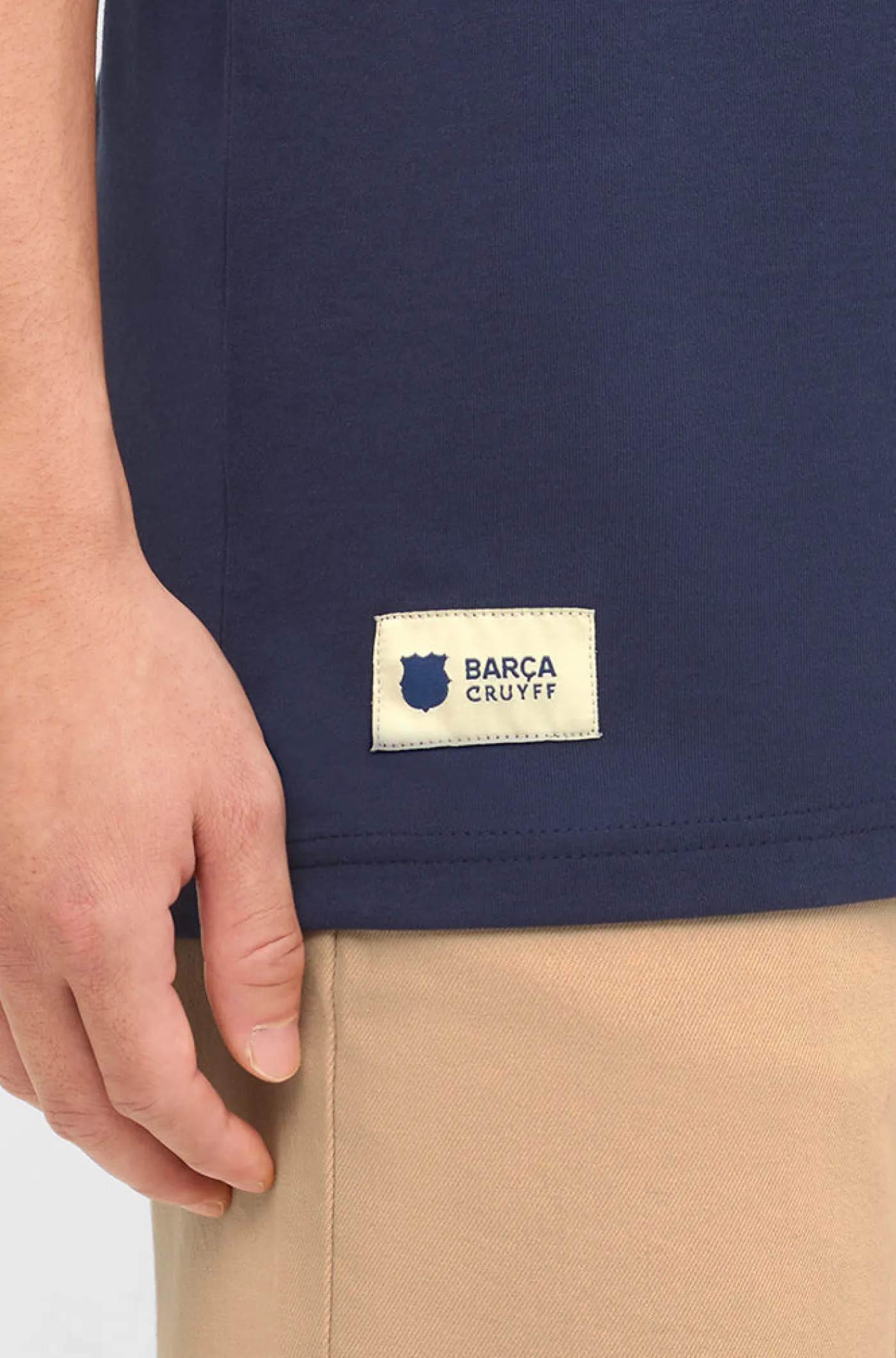 Camiseta de la colección del FC Barcelona que homenajea a Johan Cruyff a través de frases que llevan su sello y que transmiten sus conocimientos de fútbol y de la vida. Texto de «Johan Cruyff + Barça» a contraste en la parte posterior. Franjas laterales en las mangas de color rojo. Cuello redondo. Manga corta. Color: azul marino y rojo.