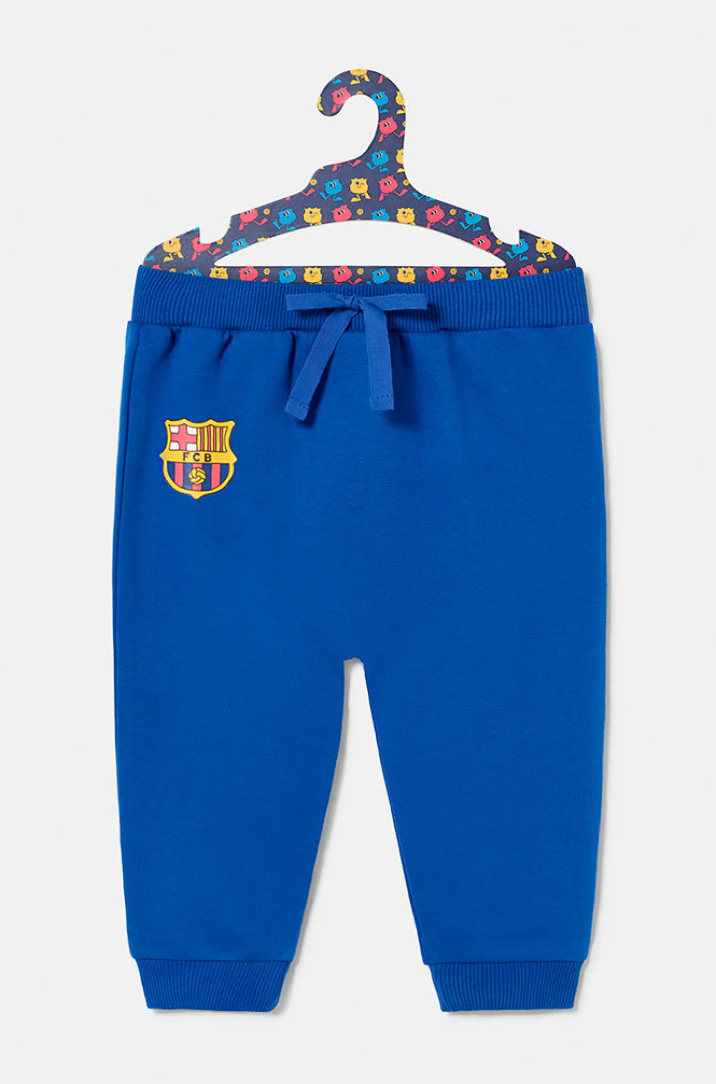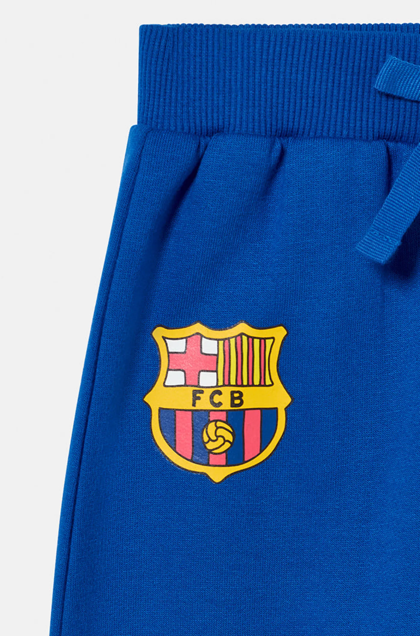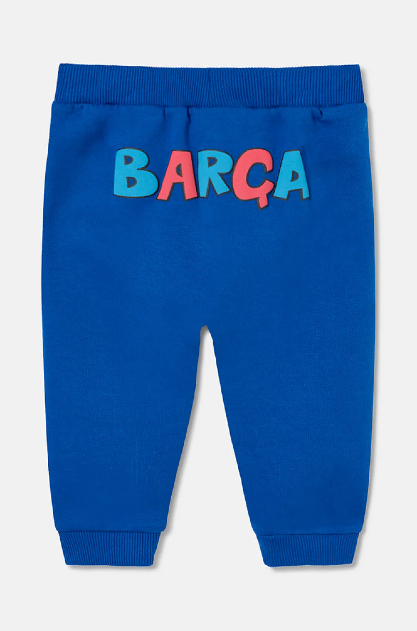 Pantalón deportivo para bebé con el escudo del FC Barcelona, ??parte trasera con la inscripción «Barça» en relieve. Cintura elástica con cordones. Puños elásticos acanalados. Color: Azul.