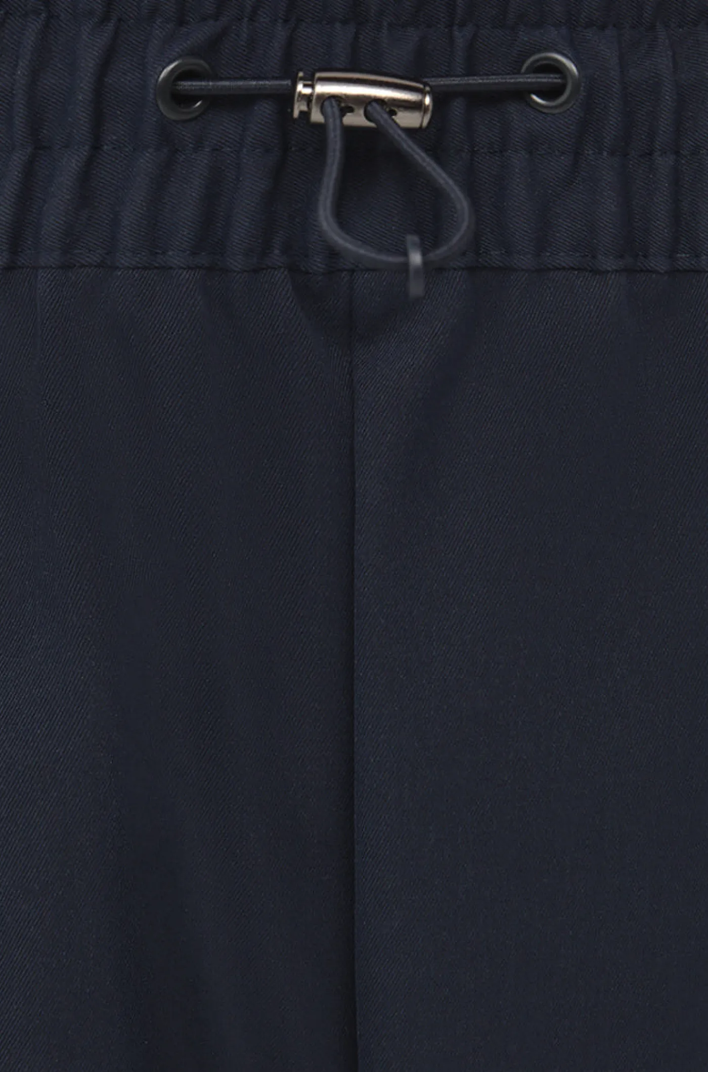 Pantalón con el escudo del FC Barcelona con la señera a contraste y logo de Nike bordados. Cintura elástica. Bolsillos laterales: 2. Bajos elásticos. Color: azul marino.